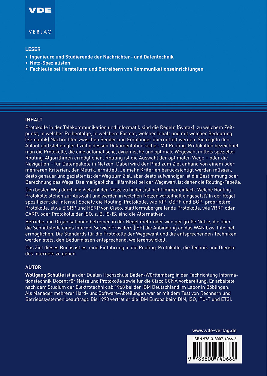 Wolfgang Schulte ist an der Dualen Hochschule Baden-Württemberg in der Fachrichtung Informationstechnik Dozent für Netze und Protokolle sowie für die Cisco CCNA Vorbereitung.