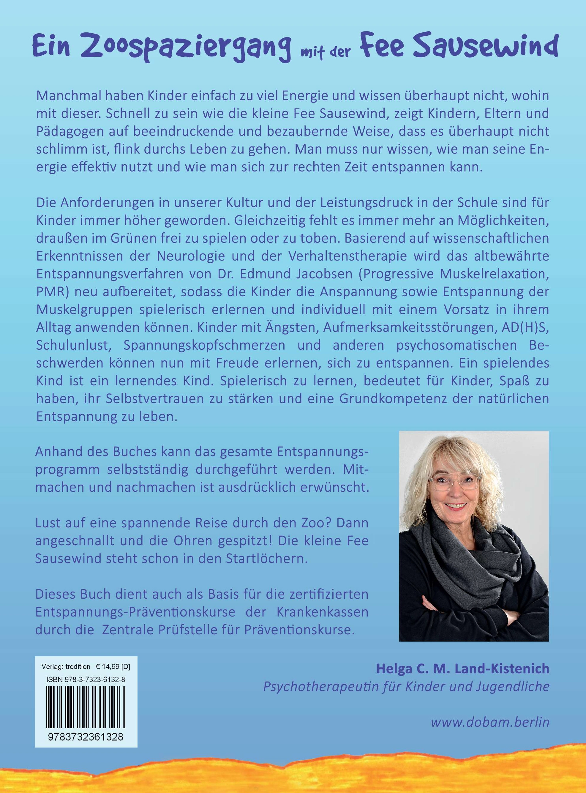 | Schlagworte | ADHS • Agressionen • Angewandte Neurologie • Ängstlichkeit • Anleitung zur Entspannung • Aufmerksamkeitsstörung • Depressionen • Edmund Jacobsen • Einnässen • Elternratgeber • Entspannung • Fee Sausewind • Jacobsen Entspannungstraining • Kinder • Kontaktängste bei Kindern • Konzentrationsstörung • Pädagogenfachbuch • Pädagogik • PMR • PMR-EGO • Progressive Muskelrelaxation PMR • Psychotherapeutin Helga Land-Kistenich • Ruhe gibt Kraft • Schulverweigerung • Spannungskopfschmerzen • Stressabbau • Zoospaziergang |