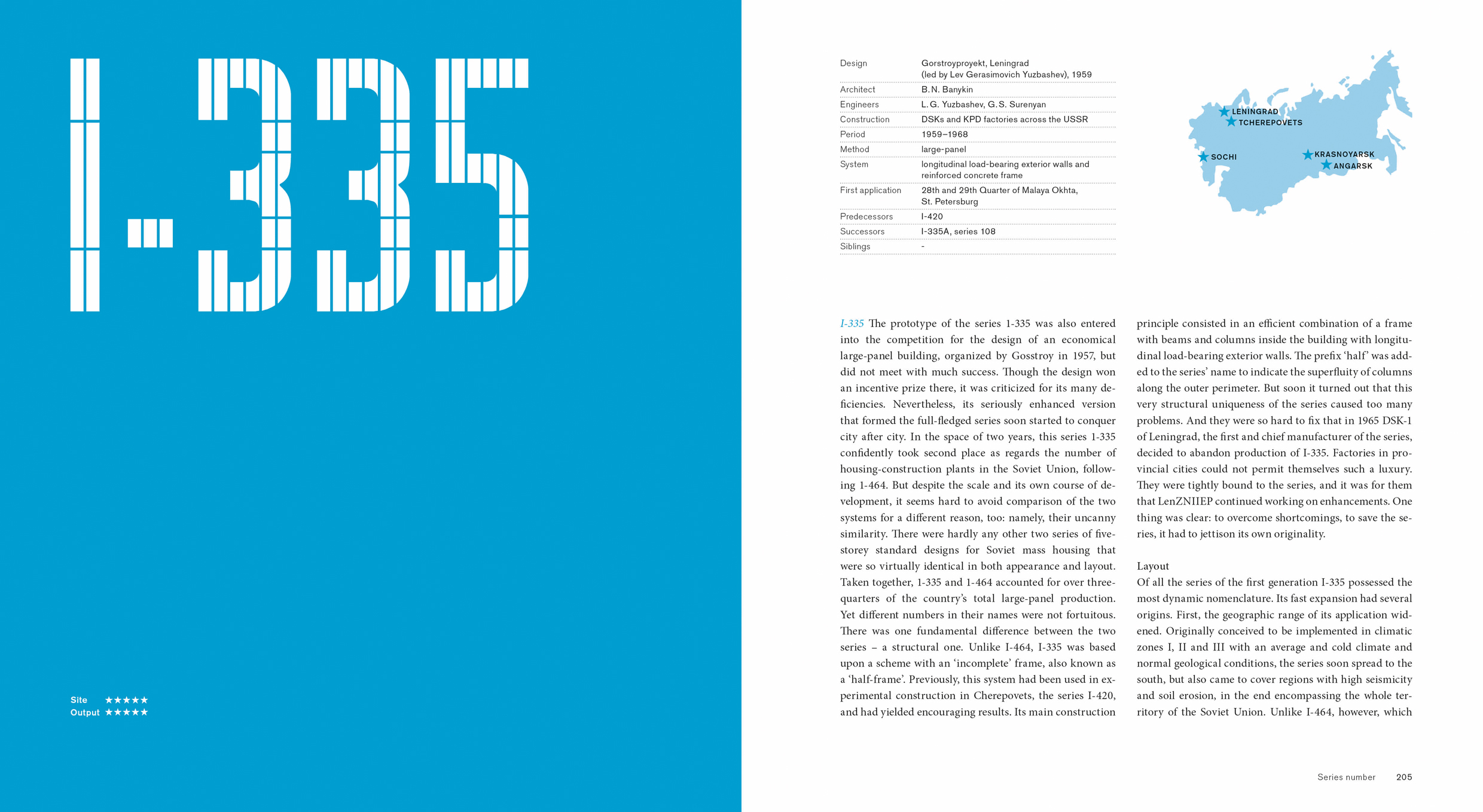 Soviet mass housing is a contradictory but unique phenomenon. It is usually blamed for creating the most monotonous built environment in the history of mankind, thus constituting a symbol of individual suppression and dejection. The construction programme launched in the post-Stalinist era was the largest undertaken in modern architectural history worldwide. At the same time, Soviet mass housing fulfi lled a colossal social role, providing tens of millions of families with their own apartments. It shaped the culture and everyday life of nearly all Soviet citizens. Yet, due to the very scale of construction, it managed to evolve into a complex world denoting an abundance of myths and secrets, achievements and failures. Soviet mass housing is indisputably intriguing, but nevertheless it is still neglected as a theme of research. Therefore, the time is ripe for a critical appraisal of this ambitious project. The authors aim to identify the most significant mass housing series designed and engineered from Kaliningrad to Vladivostok.