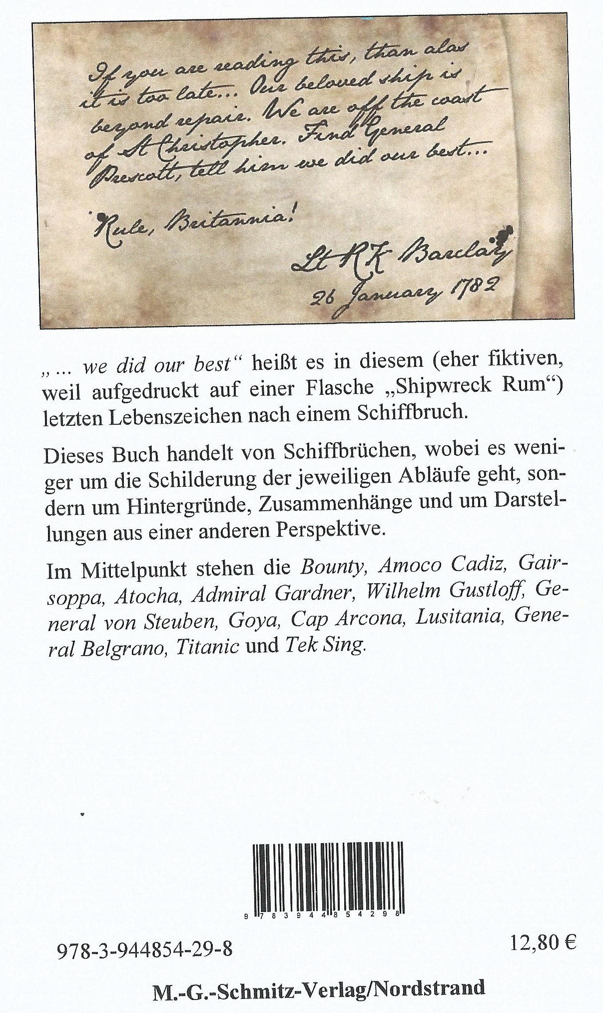 Dieses Buch handelt von Schiffbrüchen, wobei es weniger um die Schilderung der jeweiligen Abläufe geht, sondern um Hintergründe, Zusammenhänge und um Darstellungen aus einer anderen Perspektive.