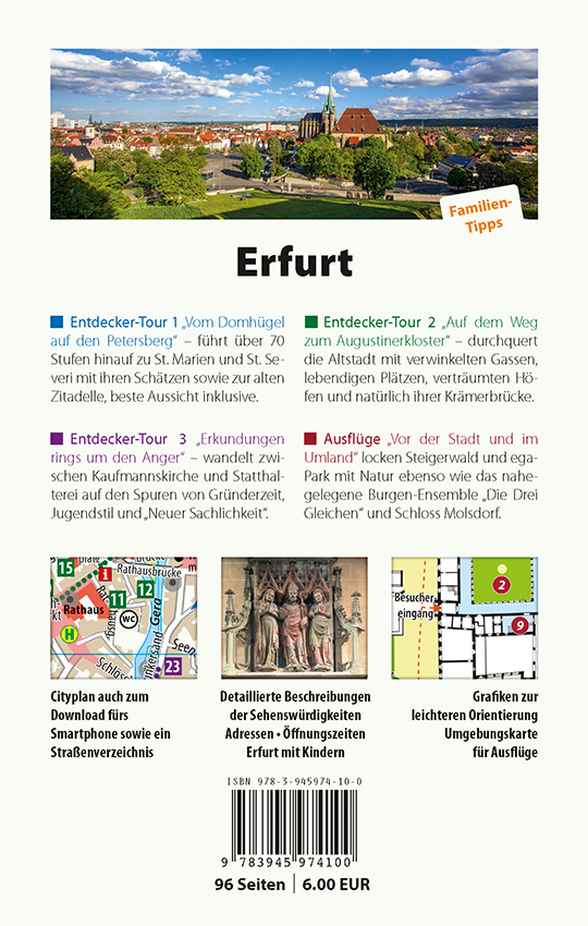 | Zusatzinfo | Innen- und Außenaufnahmen der Sehenswürdigkeiten und Stimmungsfotos aus der Altstadt halten den Charakter von Erfurt im Bild fest. |