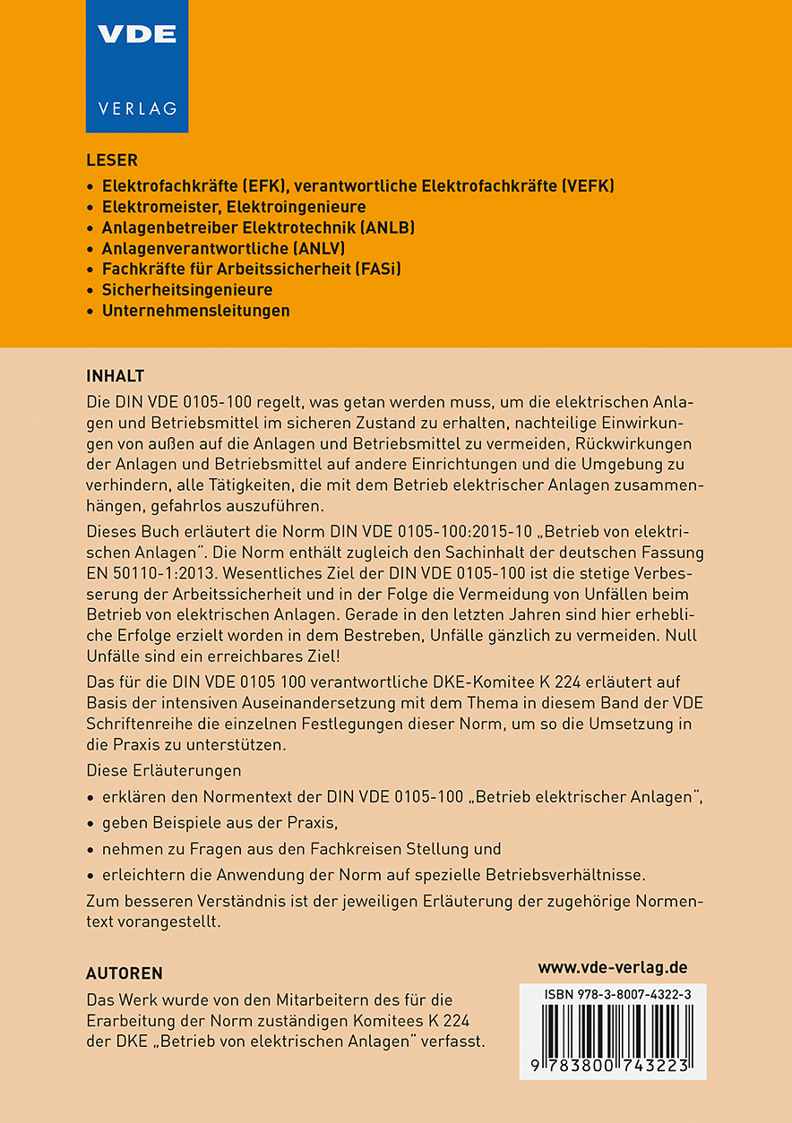 Die Erläuterungen dieses Werks wurden von den Mitarbeitern des für die Erarbeitung der Norm zuständigen Komitees K 224 der DKE "Betrieb von elektrischen Anlagen" verfasst.