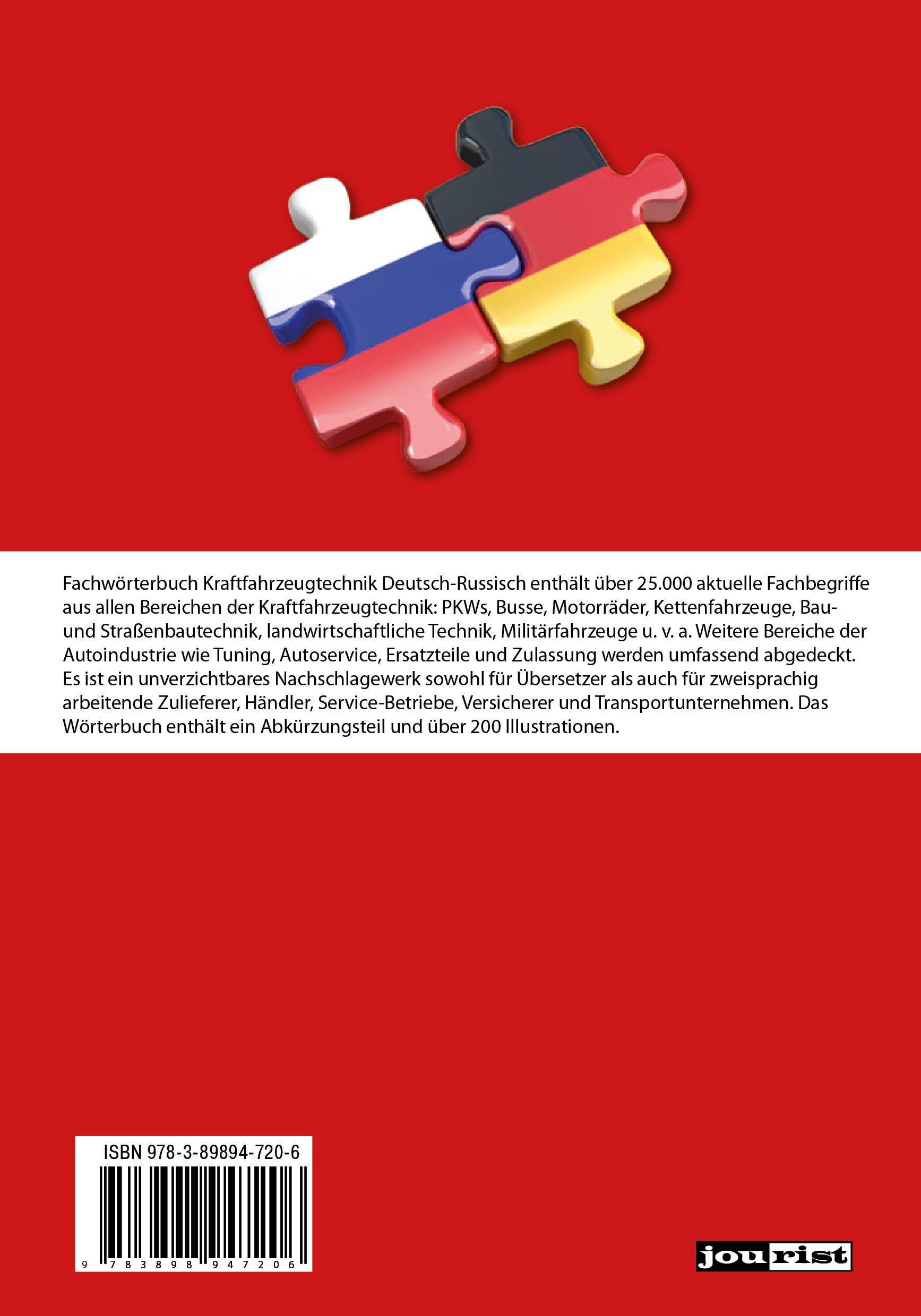 Fachwörterbuch Kraftfahrzeugtechnik Deutsch-Russisch enthält über 25.000 aktuelle Fachbegriffe aus allen Bereichen der Kraftfahrzeugtechnik: PKWs, Busse, Motorräder, Kettenfahrzeuge, Bau- und Straßenbautechnik, landwirtschaftliche Technik, Militärfahrzeuge u. v. a. Weitere Bereiche der Autoindustrie wie Tuning, Autoservice, Ersatzteile und Zulassung werden umfassend abgedeckt. Es ist ein unverzichtbares Nachschlagewerk sowohl für Übersetzer als auch für zweisprachig arbeitende Zulieferer, Händler, Service-Betriebe, Versicherer und Transportunternehmen. Das Wörterbuch enthält ein Abkürzungsteil und über 200 Illustrationen.