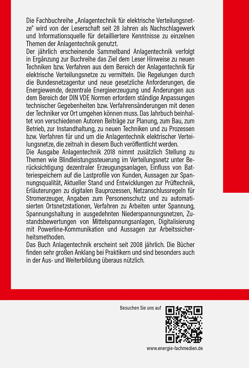 Die Fachbuchreihe "Anlagentechnik für elektrische Verteilungsnetze" wird von der Leserschaft seit 28 Jahren als Nachschlagewerk und Informationsquelle für detailliertere Kenntnisse zu einzelnen Themen der Anlagentechnik genutzt.