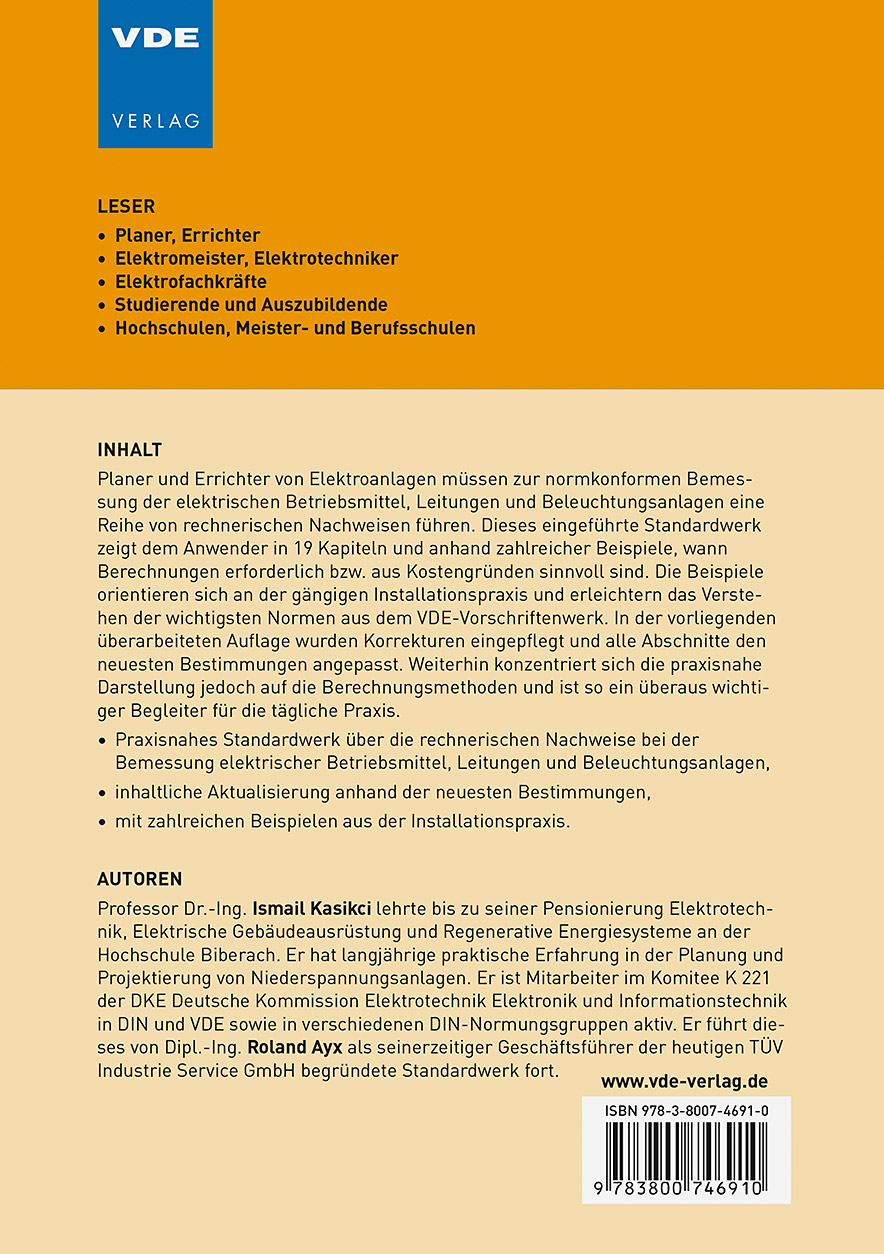 Prof. Dr.-Ing. Ismail Kasikci lehrte Elektrotechnik, Elektrische Gebäudeausrüstung und Regenerative Energiesysteme an der Hochschule Biberach. Er ist Mitarbeiter im DKE-Komitee K 221 der DKE sowie in verschiedenen DIN-Normungsgremien.