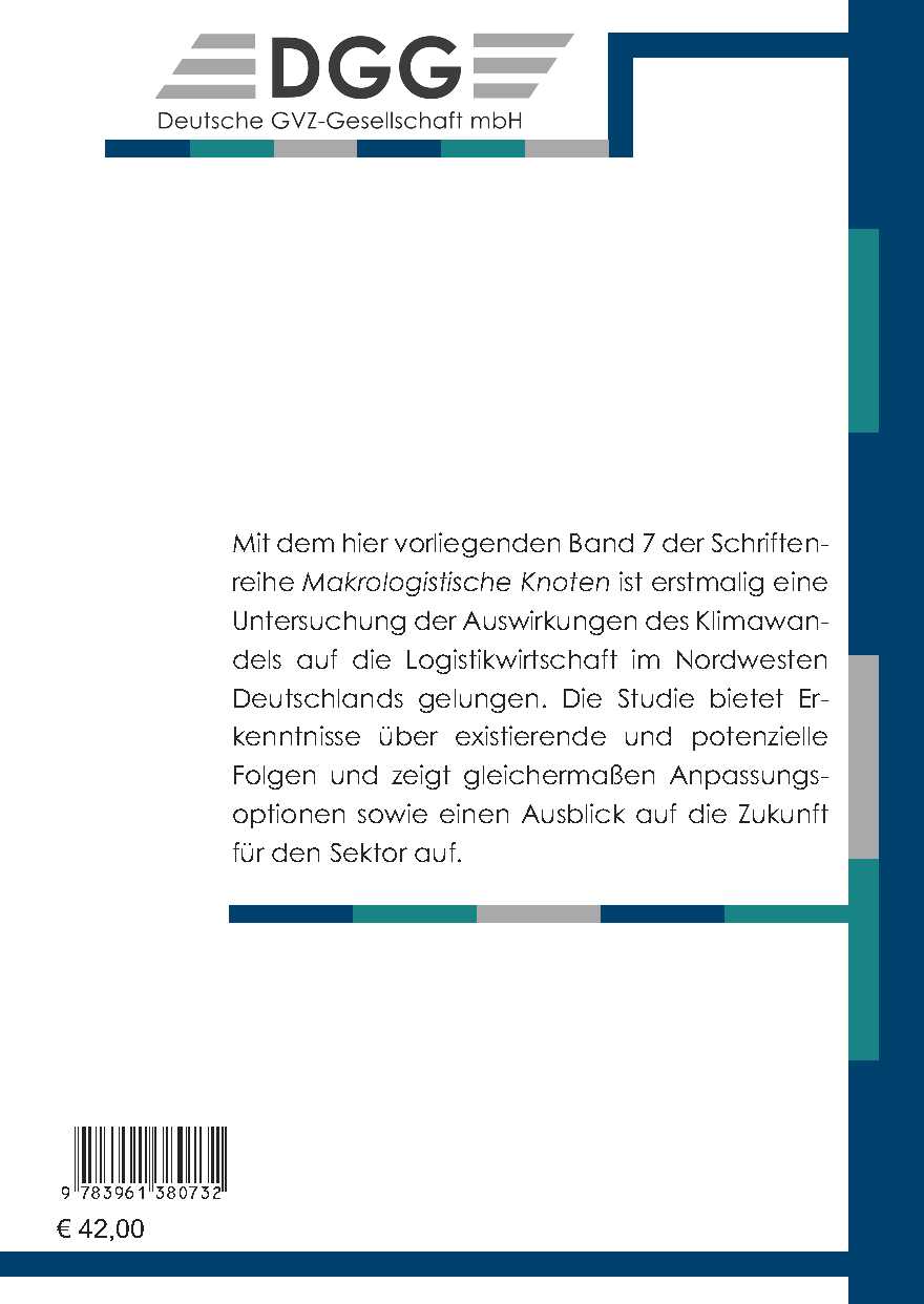 Mit dem hier vorliegenden Band 7 der Schriftenreihe Makrologistische Knoten ist erstmalig eine Untersuchung der Auswirkungen des Klimawandels auf die Logistikwirtschaft im Nordwesten Deutschlands gelungen. Die Studie bietet Erkenntnisse über existierende und potenzielle Folgen und zeigt gleichermaßen Anpassungsoptionen sowie einen Ausblick auf die Zukunft für den Sektor auf.