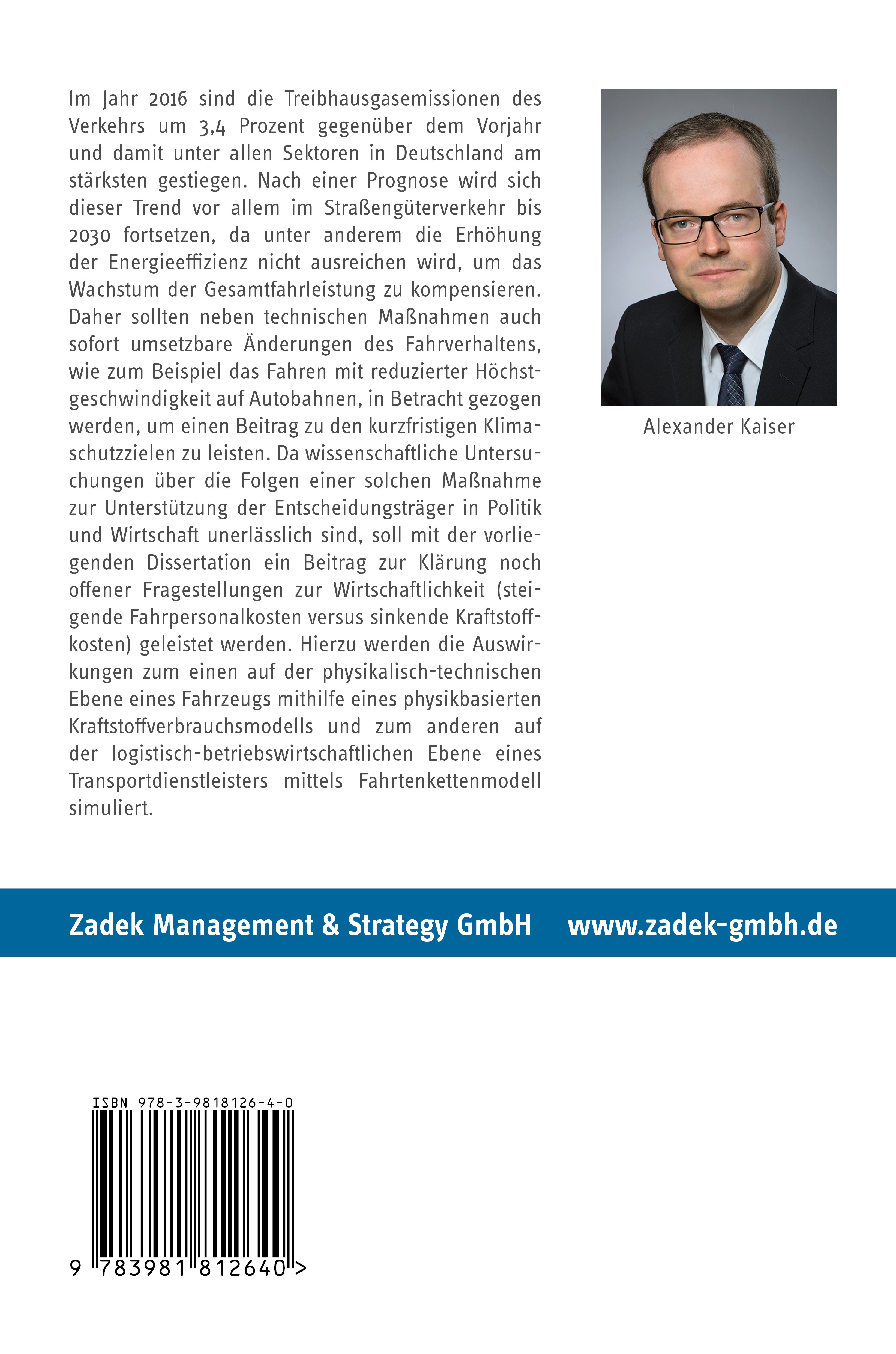 Der Verkehrssektor ist einer der großen Verursacher von Treibhausgasemissionen. Trotz Anstrengungen zur Senkung dieser Emissionen, sind sie in den letzten Jahren nicht zuletzt aufgrund des Wachstums im Verkehrssektor in Deutschland gestiegen. Durch Einführung von umweltökonomischen Instrumenten wie Emissionszertifikaten oder -steuern auf den Kraftstoffverbrauch können die finanziellen Anreize verstärkt werden, neben technischen Maßnahmen wie dem Leichtbau auch unmittelbare Schritte wie die Fahrverhaltensänderungen zur Senkung der Emissionen umzusetzen. Landläufig wird eine Geschwindigkeitsreduzierung auf Autobahnen als äußerst wirksam im Hinblick auf die Reduzierung von Treibhausgasemissionen angesehen. Doch diese Aussage ist zu pauschal und undifferenziert. Herr Kaiser macht diese Maßnahme zum Gegenstand seiner Untersuchungen im Rahmen dieser Promotionsschrift. Die Akzeptanz und Umsetzung der Maßnahme hängt nicht nur vom Reduktionseffekt der Emissionen, sondern auch den wirtschaftlichen Auswirkungen ab, denn mit Reduktion der Höchstgeschwindigkeit steigt die Fahrzeit. Das hat gegebenenfalls Auswirkungen auf den Fahrereinsatz bezüglich Lenkzeiten und erfordert den Einsatz von mehr Personal und Fahrzeugen, um den Lieferverpflichtungen nachzukommen. Eine Antwort zur Sinnhaftigkeit reduzierter Höchstgeschwindigkeiten ist daher nicht trivial und erfordert eine umfassendere Betrachtung. Zur Analyse der realen Auswirkungen auf der physikalisch-technischen Ebene eines Fahrzeugs wird ein physikbasiertes Kraftstoffverbrauchsmodell erstellt. Dieses Modell wird für eine Analyse der logistisch-betriebswirtschaftlichen Ebene eines Transportdienstleisters mit einem Fahrtenkettenmodell verknüpft. Die untersuchten Fahrzeugklassen repräsentieren etwa 90 % des Dieselverbrauchs bzw. der Treibhausgasemissionen aller schweren Nutzfahrzeuge in Deutschland. Mithilfe des entwickelten Fahrtenkettenmodells werden die Auswirkungen einer geringeren Durchschnittsgeschwindigkeit auf den Zeitablauf aller im Jahr vorgesehenen Fahrten eines Fahrzeugs untersucht. Dabei werden Fahrverbots- sowie Lenk- und Ruhezeiten einbezogen. Ziel des integrierten Modells ist es, die zeitlich wirksame Maßnahme einer reduzierten Höchstgeschwindigkeit im Hinblick auf ihren Beitrag zur Senkung der Treibhausgasemissionen sowie deren Wirtschaftlichkeit zu analysieren und zu bewerten. Mit dieser Arbeit widmete sich Herr Alexander Kaiser einem höchst aktuellen Thema und konnte sein Promotionsverfahren mit der Note „sehr gut“ abschließen. Dank gilt dem Bundesministerium für Wirtschaft und Energie mit dem Programm der Gemeinschaftsforschung des Forschungsnetzwerks Mittelstand (AiF), das durch zwei Förderprojekte zum Thema Treibhausgasemissionen im Straßengüterverkehr den inhaltlichen Rahmen für die anwendungsnahe und praxisorientierte Promotion bot. Magdeburg, im August 2018 Prof. Dr.-Ing. Hartmut Zadek
