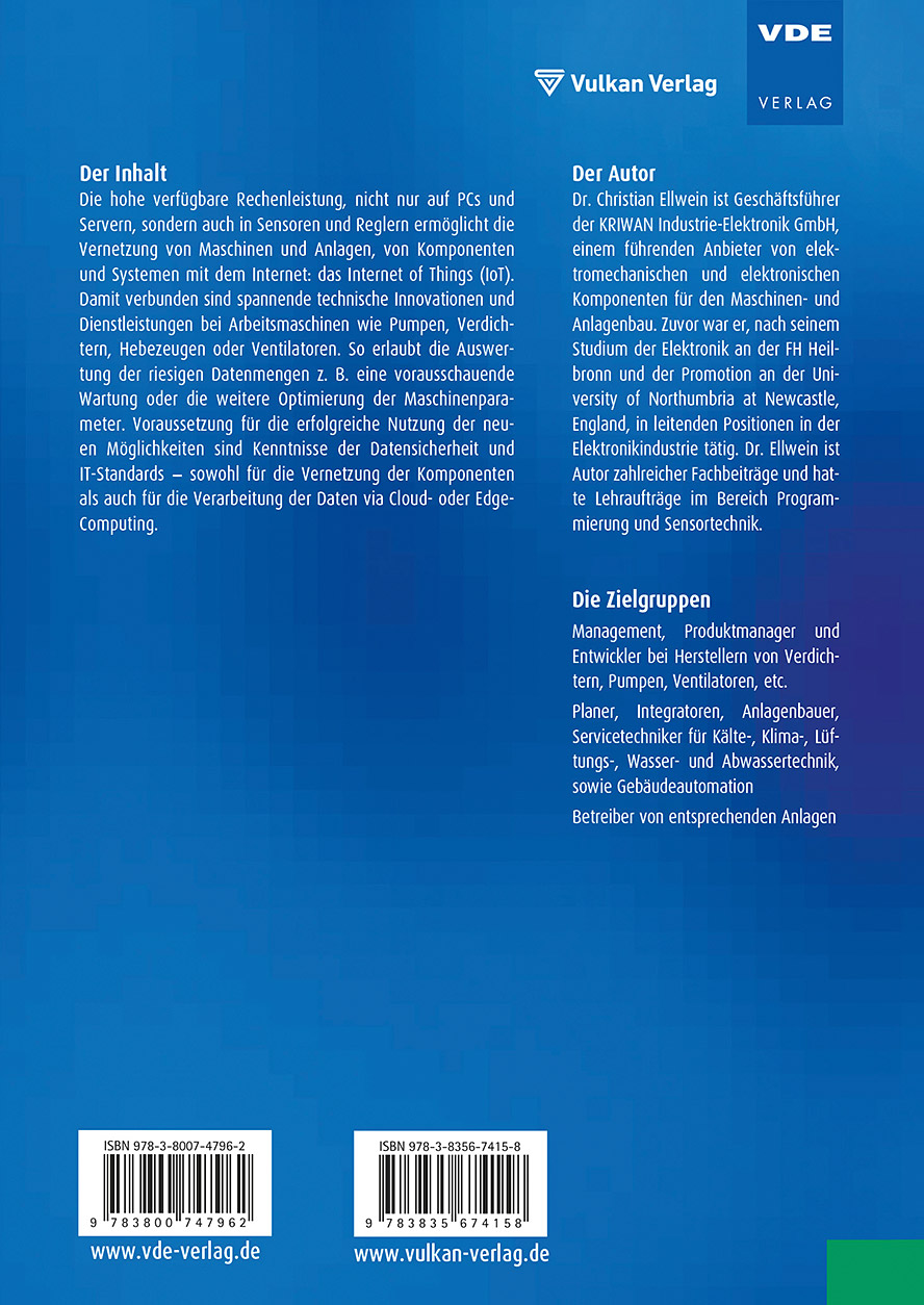 Die hohe verfügbare Rechenleistung, nicht nur auf PCs und Servern, sondern auch in Sensoren und Reglern ermöglicht die Vernetzung von Maschinen und Anlagen, von Komponenten und Systemen mit dem Internet: das Internet of Things (IoT). Damit verbunden sind spannende technische Innovationen und Dienstleistungen bei Arbeitsmaschinen wie Pumpen, Verdichter, Hebezeuge oder Ventilatoren. So erlaubt die Auswertung der riesigen Datenmengen z. B. eine vorausschauende Wartung oder die weitere Optimierung der Maschinenparameter. Voraussetzung für die erfolgreiche Nutzung der neuen Möglichkeiten sind Kenntnisse der Datensicherheit und IT-Standards - sowohl für die Vernetzung der Komponenten als auch für die Verarbeitung der Daten via Cloud- oder Edge-Computing.
