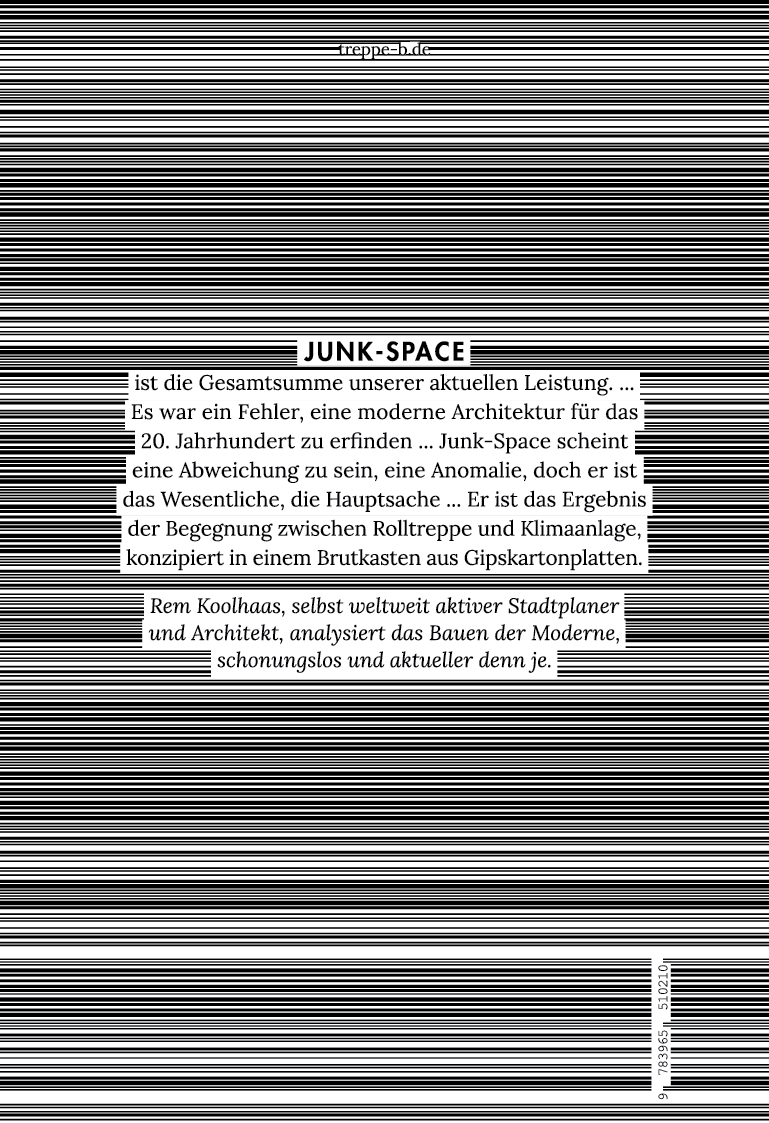 Wenn Weltraummüll - Space-Junk - der vom Menschen stammende Schrott im Universum ist, dann ist Junk-Space das, was die Menschheit auf unserem Planeten hinterlassen wird. Das gebaute Ergebnis (später dazu mehr) von Modernisierung ist keine moderne Architektur, sondern Junk-Space.