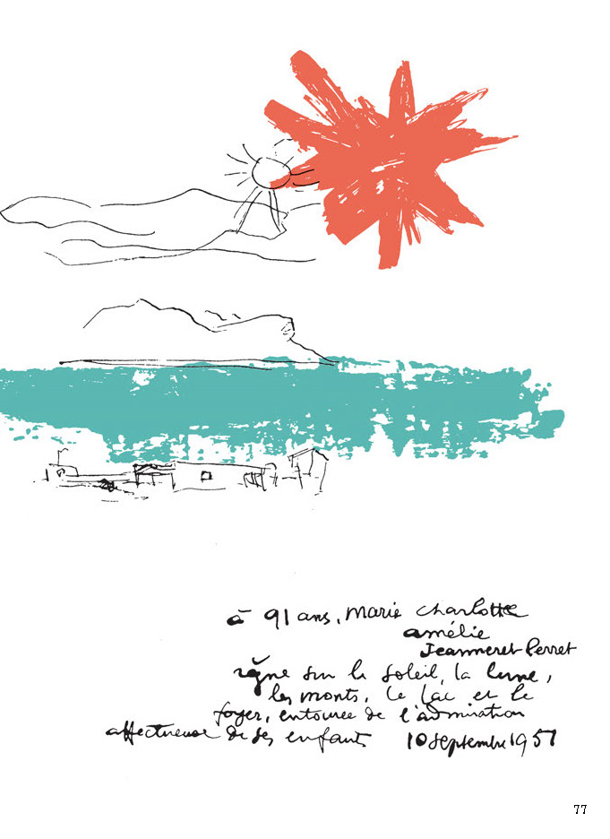 "Retrospektiv beschrieb Le Corbusier viele Jahre später die Genese des Hauses, das er hier am See, in Vevey, für seine Eltern gebaut hatte. [...] Und er predigt ein Mal mehr das Rationale der 'Wohnmaschine', die sich auch im Kleinen bewähre. 'Genau den einzelnen Funktionen angepasste Dimensionen führen zu äußerster Raumausnützung.' [...] Le Corbusier ist wahrlich nicht der Erste, der seine eigenen Bauten programmatisch publiziert - diese Tradition reicht bis zu Palladio zurück. Bemerkenswert ist allerdings, dass die Programmatik beim Besuch des nicht nur publizierten, sondern gebauten Hauses, mehr als standhält. Das Haus manifestiert, wie gut es sich auf geringer Grundfläche leben lässt - und zwar gemeinsam, in unterschiedlichen Arten des Zusammenlebens, nicht im Sinne der Single-Optimierung. Voraussetzung dafür ist, dass relativ wenig Hab und Gut zu verstauen ist. Wirtschaftswunder und Wachstumsideologien belasteten den Alltag der Jeannerets nicht." (Ursula Baus in Marlowes, 09.2021)