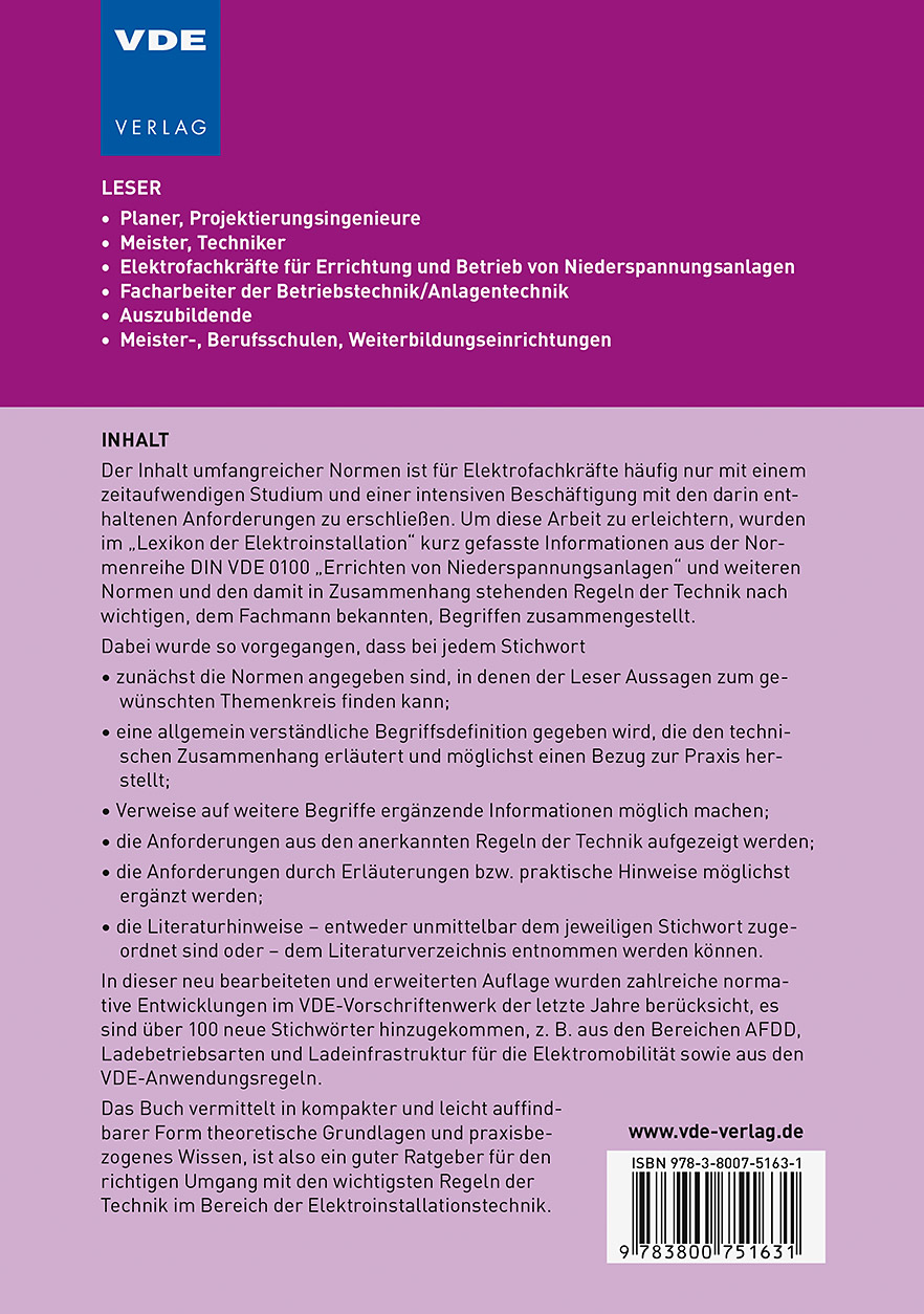 | Schlagworte | DIN VDE 0100 • DIN-VDE-Norm • Installationstechnik • Lexikon • Niederspannungsanlage • NS-Anlagen • Stichwortverzeichnis • VDE-Bestimmung • VDE-Vorschriftenwerk |
