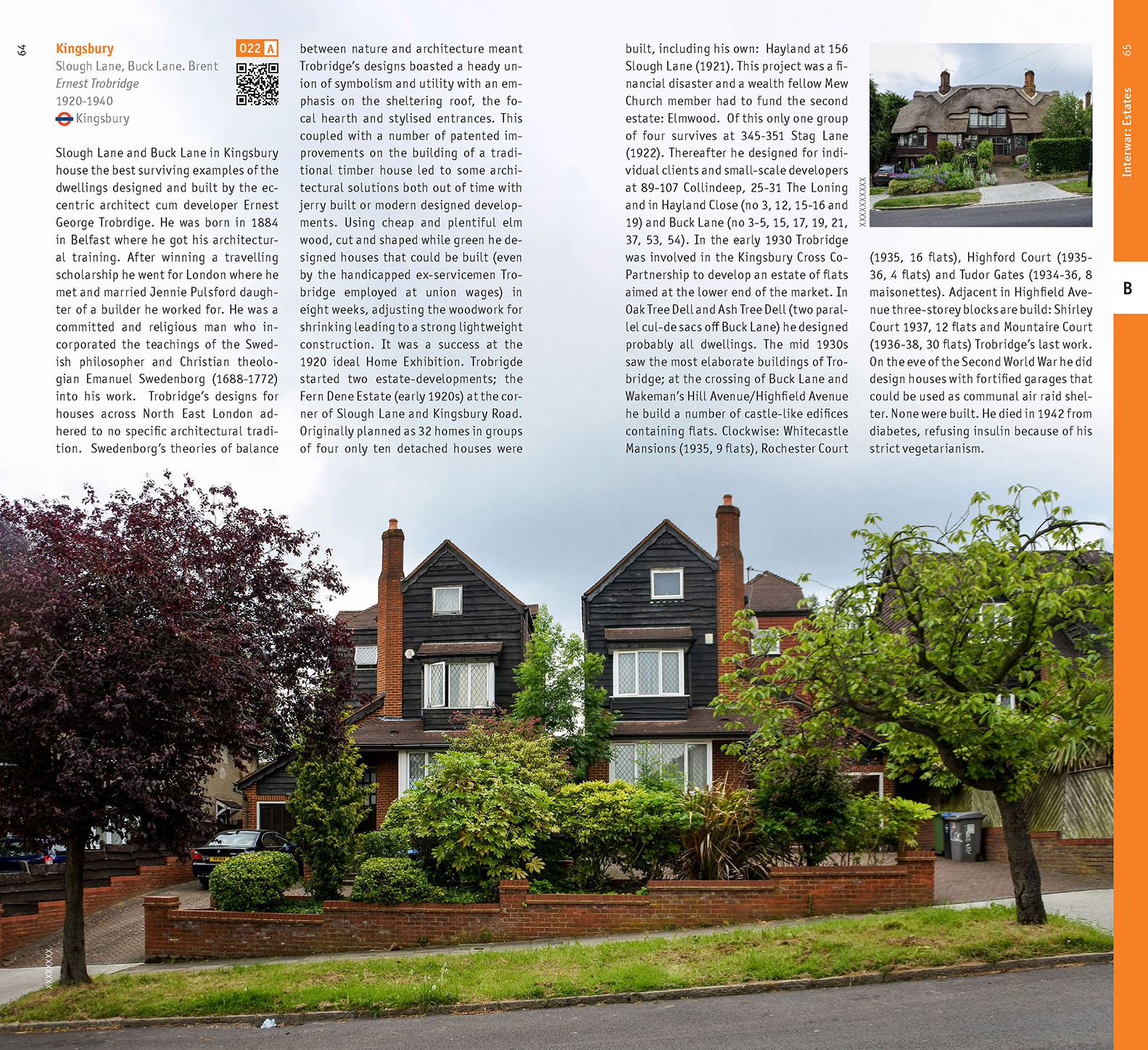 Divided by period rather than architectural style, this guide focuses on the developments in this field, beginning at the close of the nineteenth century and finishing at the present day. Twentieth-century buildings thus make up the bulk of the guide: garden suburbs, quintessentially English mock Tudor estates, and brutalist icons such as the Barbican and Robin Hood Gardens are all feature in these pages. As do lesser-known works, situated both in the heart of the metropolis and its outer suburbs.