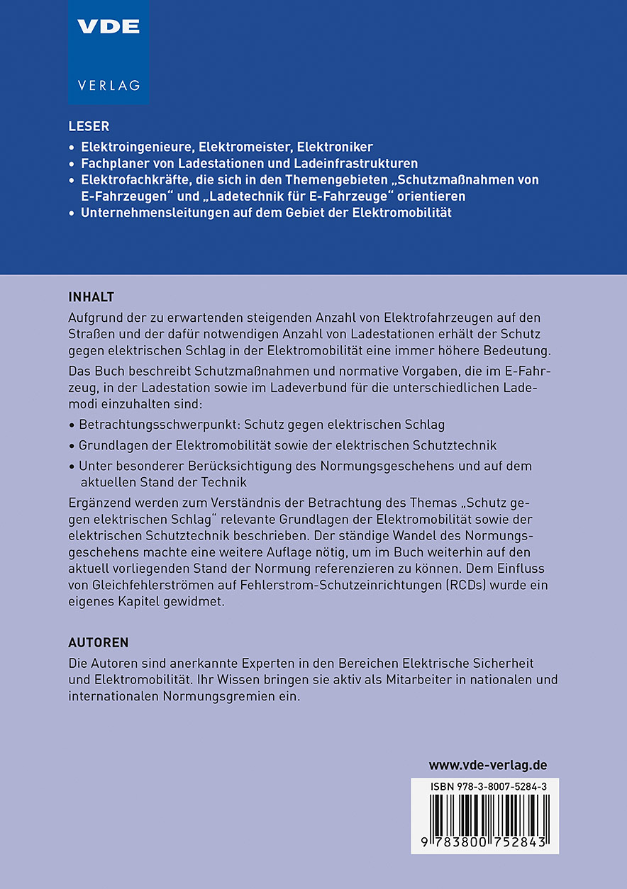 | Schlagworte | DIN IEC/TS 60479-1 • DIN VDE 0100-410 • E-Fahrzeug • Elektromobilität • E-Mobilität • Ladeinfrastruktur • Schutz gegen el. Schlag • Sicherheit in Elektromobilität • Sicherheit v.Elektrofahrzeugen • VDE V 0140-479-1 |