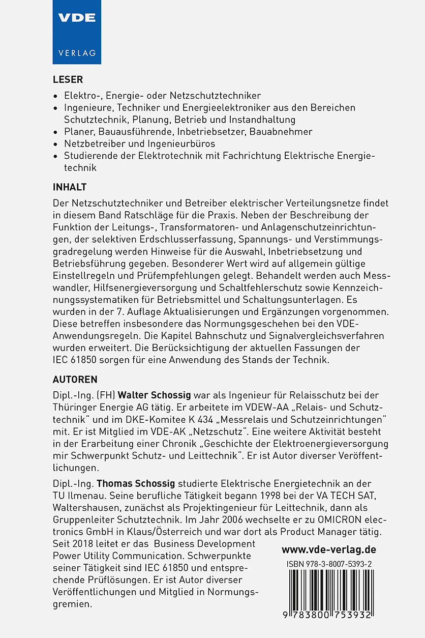 Es wurden in der 7. Auflage Aktualisierungen und Ergänzungen vorgenommen. Diese betreffen insbesondere das Normungsgeschehen bei den VDE-Anwendungsregeln. Die Kapitel Bahnschutz und Signalvergleichsverfahren wurden erweitert. Die Berücksichtigung der aktuellen Fassungen der IEC 61850 sorgen für eine Anwendung des Stands der Technik.