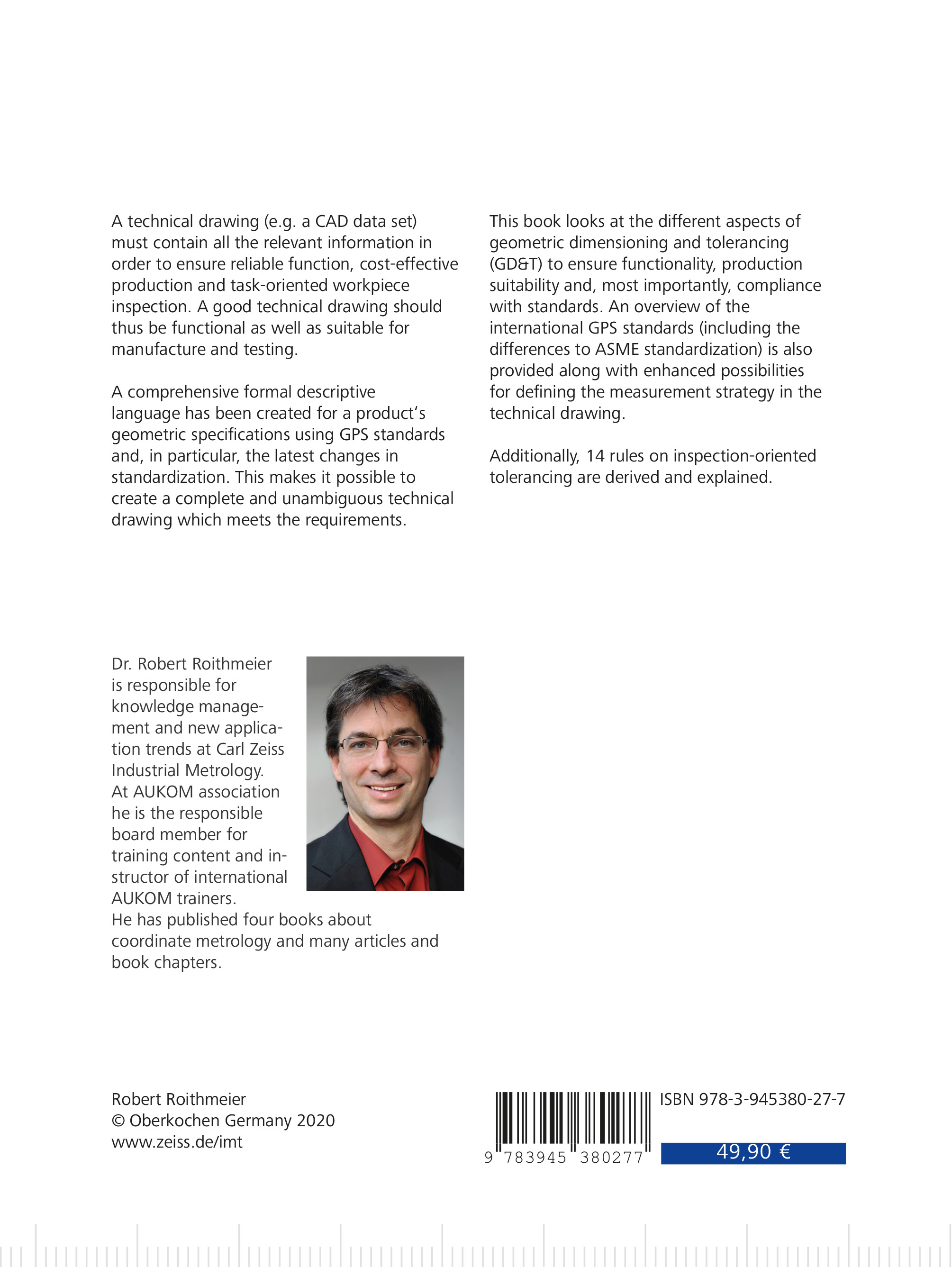 This book looks at the different aspects of geometric dimensioning and tolerancing (GD&T) to ensure functionality, production suitability and, most importantly, compliance with standards. An overview of the international GPS standards (including the differences to ASME standardization) is also provided along with enhanced possibilities for defining the measurement strategy in the technical drawing.