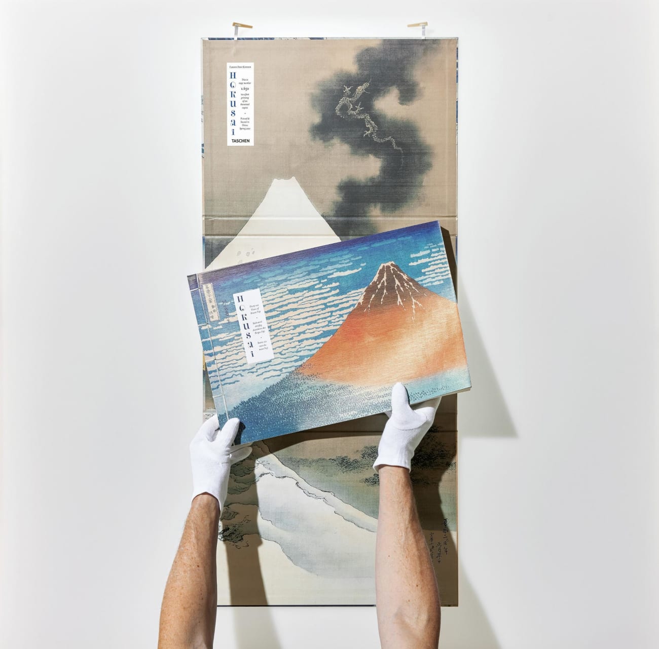„Hokusais Opus Magnum ist in einem Prachtband beim TASCHEN-Verlag aufgelegt worden. Das Kunstbuch ist ein Fang für alle Freunde der japanischen Kultur. In Satin und mit weißem Faden japanisch gebunden kommen alle Tafeln der Holzschnittserie in die Hände des glücklichen Besitzers, jede mit einer Erklärung daneben, dazu ein ausführliches Vorwort des Herausgebers Andreas Marks.“