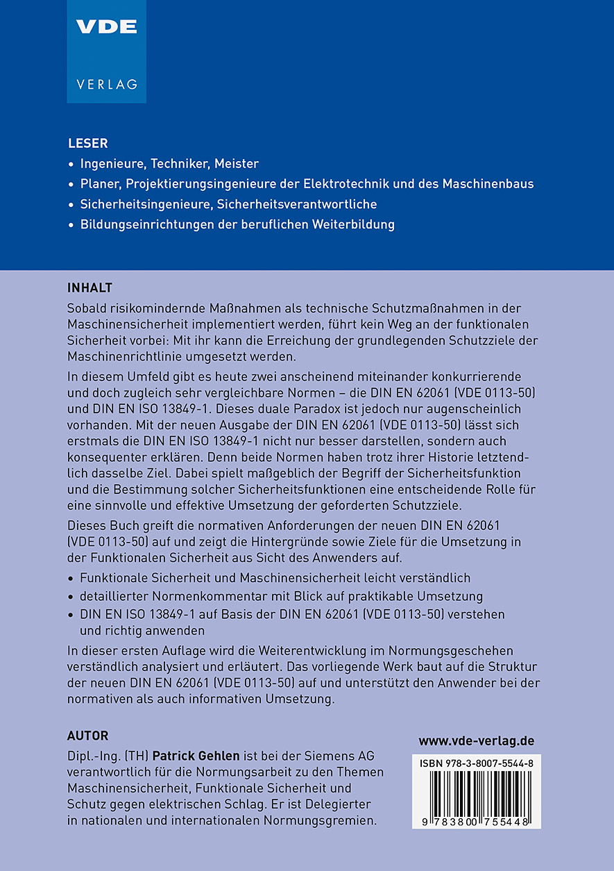 Erläuterungen zu DIN EN 62061 (VDE 0113-50) und DIN EN ISO 13849-1 für Elektrofachkräfte und Maschinenbauer – Hinweise zur normengerechten Anwendung