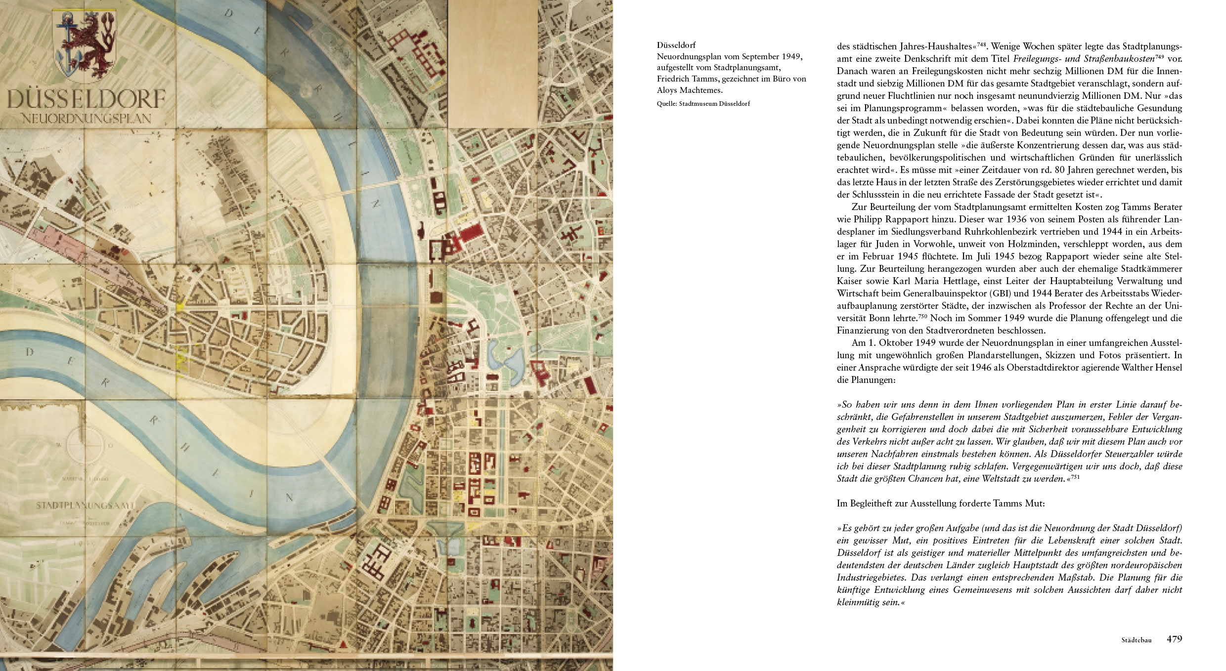 Tamms gab sich in Düsseldorf Rechenschaft über sein Handeln. Düwel und Gutschow fragen nicht nur nach Kontinuitäten über den Nationalsozialismus hinaus bis in die Bundesrepublik, sondern heben den Einstellungswandel als Prozess heraus. Mühsam löste sich Tamms von vermeintlich ehernen Gewissheiten und strebte, so wie der Großteil der Profession, nach neuen »Gesetzmäßigkeiten«.