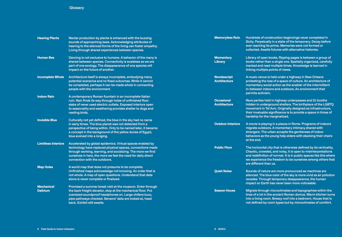 lt;p>Published by the interdisciplinary design studio MODU, this "field guide" explores threshold spaces between the interior and the exterior. What are experiences between architecture and the environment? Where can the boundaries between the interior and the urban be drawn? What role does the climate crisis play in this? For their research and design projects, Phu Hoang and Rachely Rotem look at three major cities on different continents: New York, Rome, and Tokyo. MODU leaves behind the binary idea of inside and outside and rather understands architecture as an extension of the environment. Thus, it imagines a hybrid of urban space, architecture, and interior space. The book explores the different geographic locations and presents their own design projects.