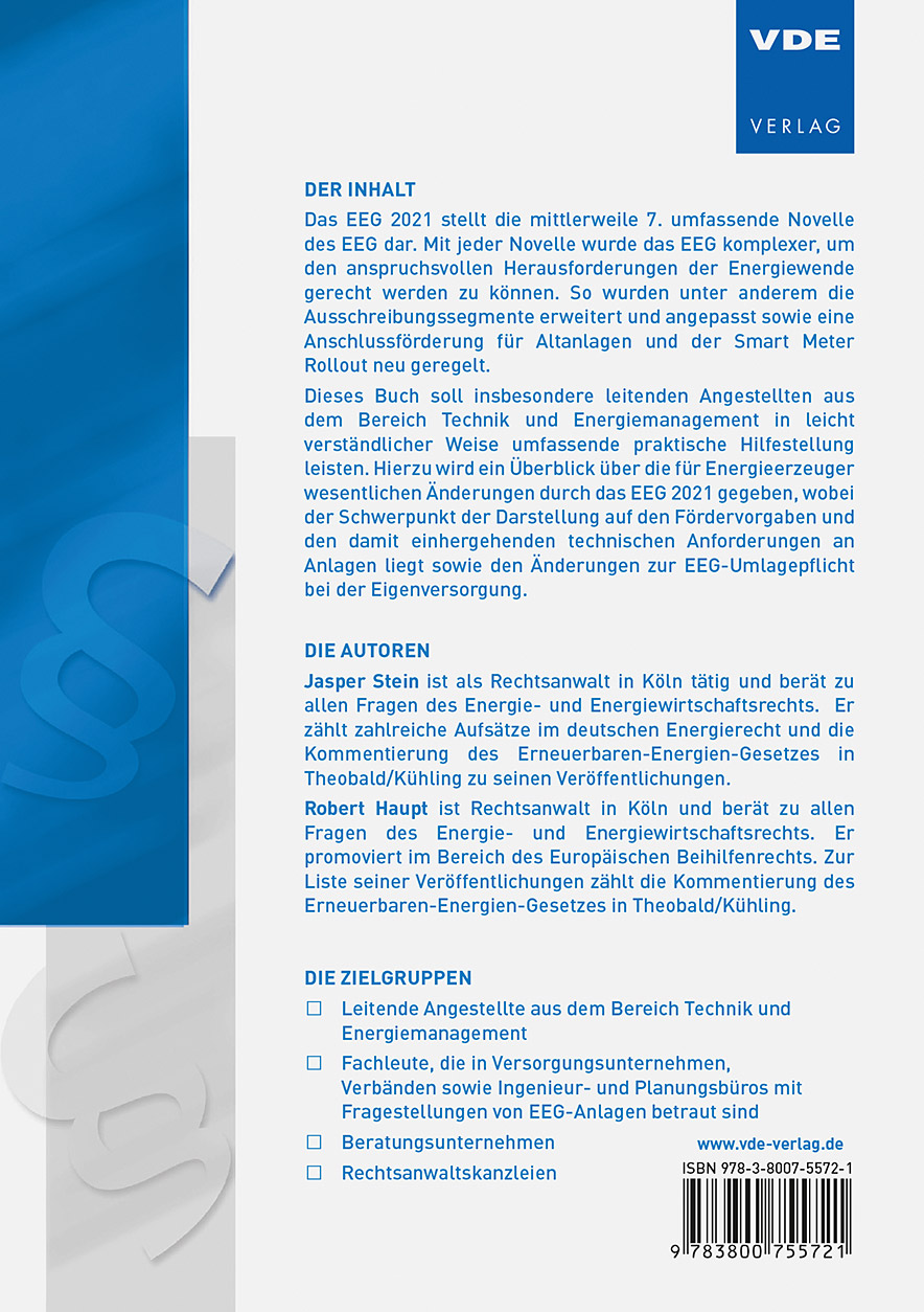| Schlagworte | Direktvermarktung • EEG-Umlage • Einspeisemanagement • Einspeisevergütung • Energieversorgung • Erneuerbare Energien • Förderbestimmungen • Netzkapazität • Stromversorgung • Transformation |