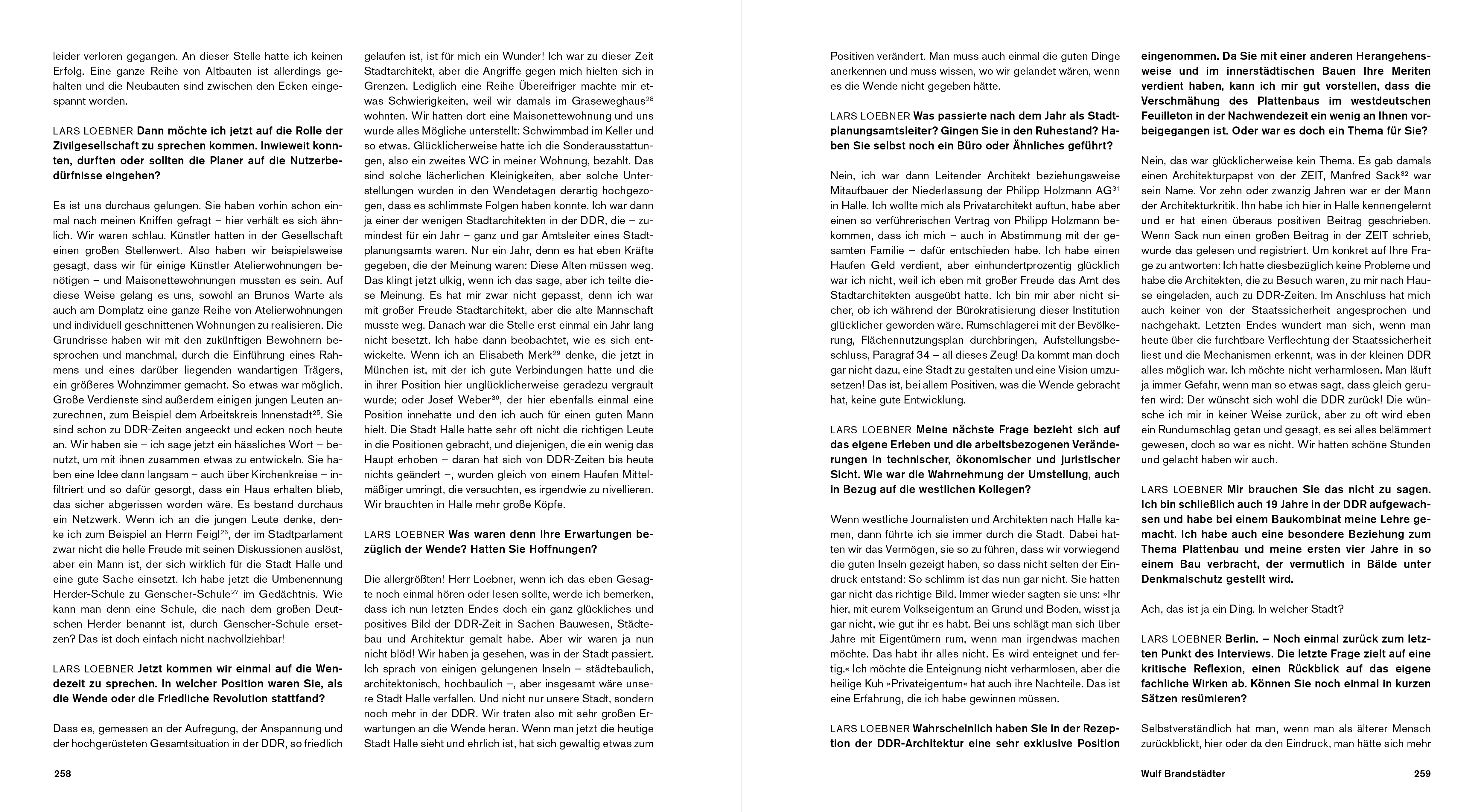 Interviews mit: Bruno Flierl, Wolfgang Kil, Dietmar Fischer, Johannes Schulze, Marta Doehler-Behzadi, Heike Scheller, Frieder Hofmann, Wolfgang Hocquél, Winfried Sziegoleit, Angela Wandelt, Michael Bräuer, Wulf Brandstädter