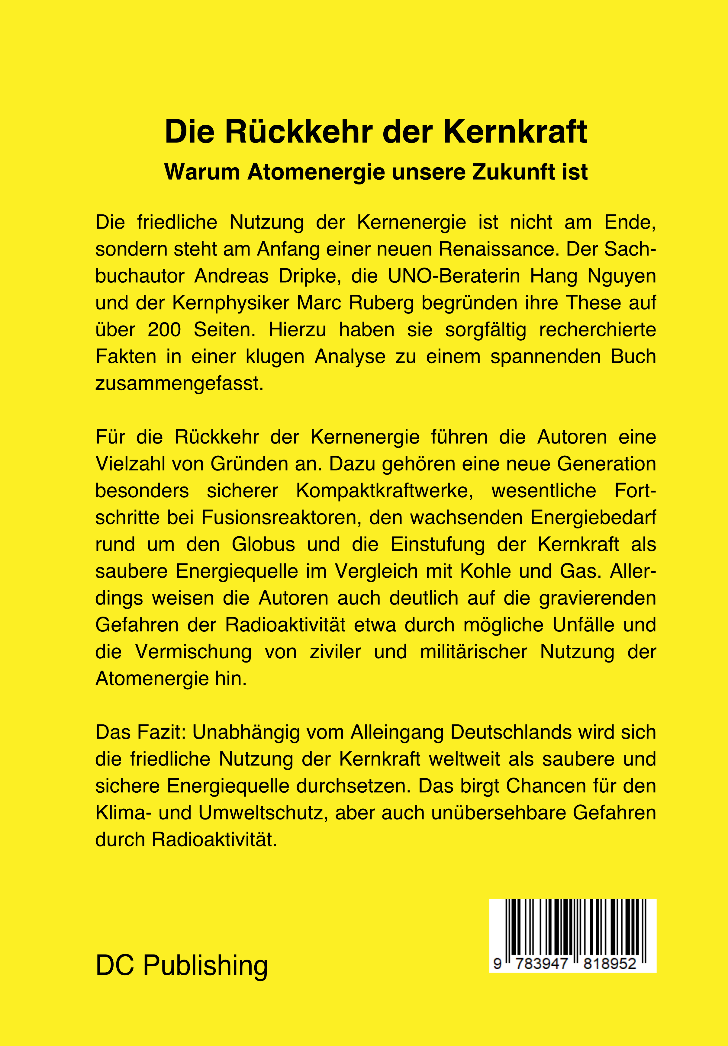 Der Sachbuchautor Andreas Dripke, die UNO-Beraterin Hang Nguyen und der Kernphysiker Marc Ruberg haben auf über 200 Seiten sorgfältig recherchierte Fakten verbunden mit einer klugen Analyse zu einem spannenden Buch zusammengefasst. Dabei weisen sie auch deutlich auf die Gefahren etwa durch Unfälle oder die Vermischung von ziviler und militärischer Nutzung der Atomenergie hin.