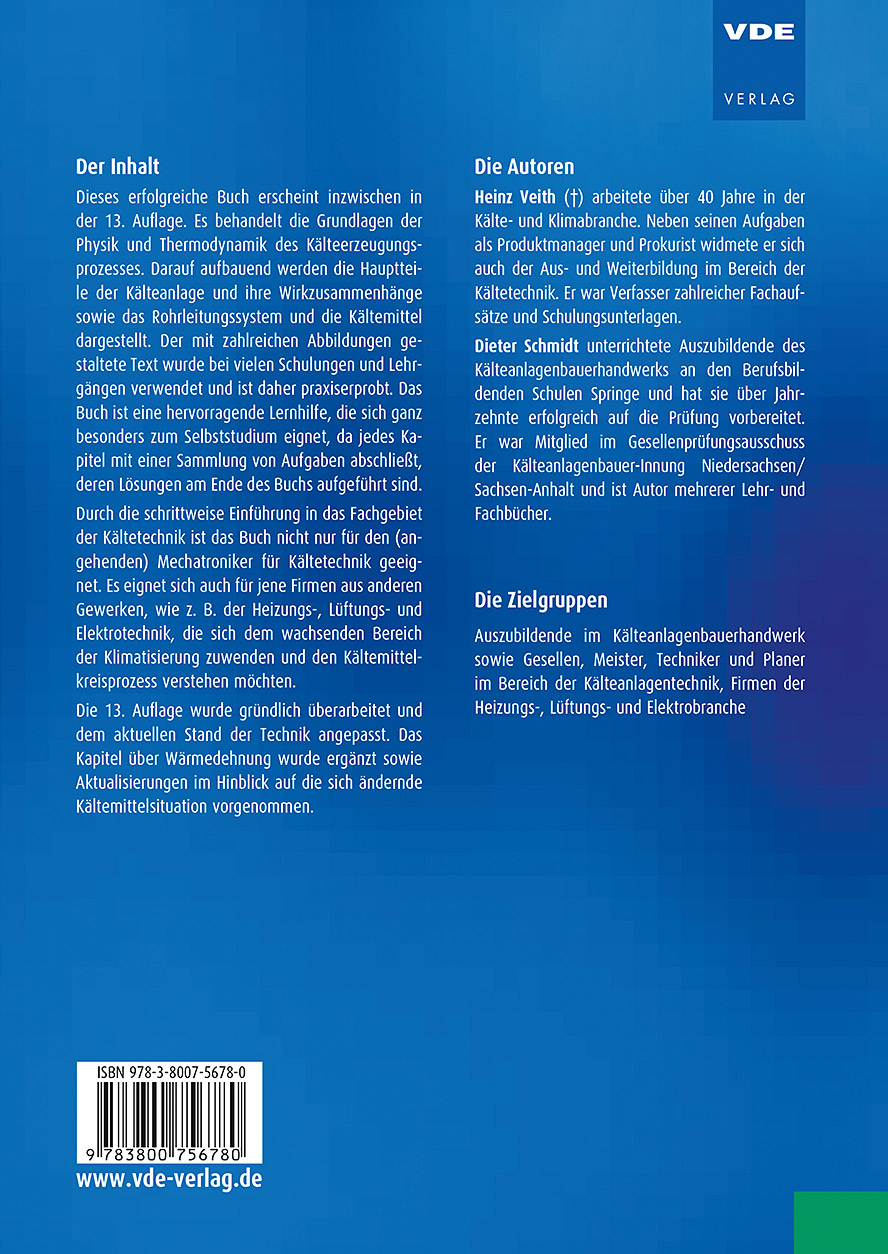 Die 13. Auflage wurde gründlich überarbeitet und dem aktuellen Stand der Technik angepasst. Das Kapitel über Wärmedehnung wurde ergänzt sowie Aktualisierungen im Hinblick auf die sich ändernde Kältemittelsituation vorgenommen.