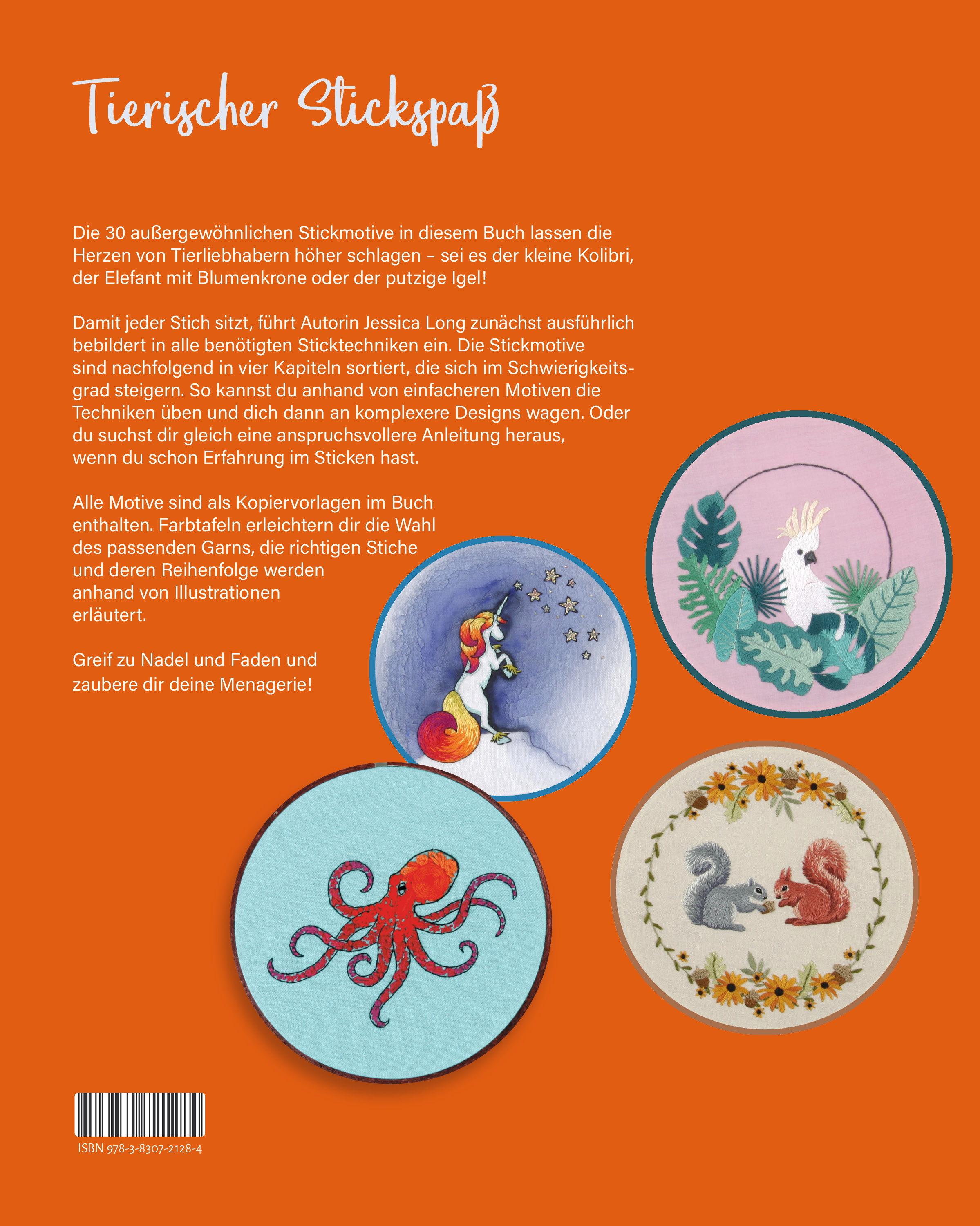 Die 30 außergewöhnlichen Stickvorlagen in diesem Buch lassen die Herzen von Tierliebhabern höher schlagen - sei es der kleine Kolibri, der Elefant mit Blumenkrone oder der putzige Igel. Um das Nacharbeiten möglichst einfach zu machen, erläutert Autorin Jessica Long zunächst ausführlich bebildert alle benötigten Stickstiche: Vom Kettenstich über den Knötchenstich bis hin zum Plattstich lernst du alles, was du wissen musst, um Lama, Panda und Co. zum Leben zu erwecken.