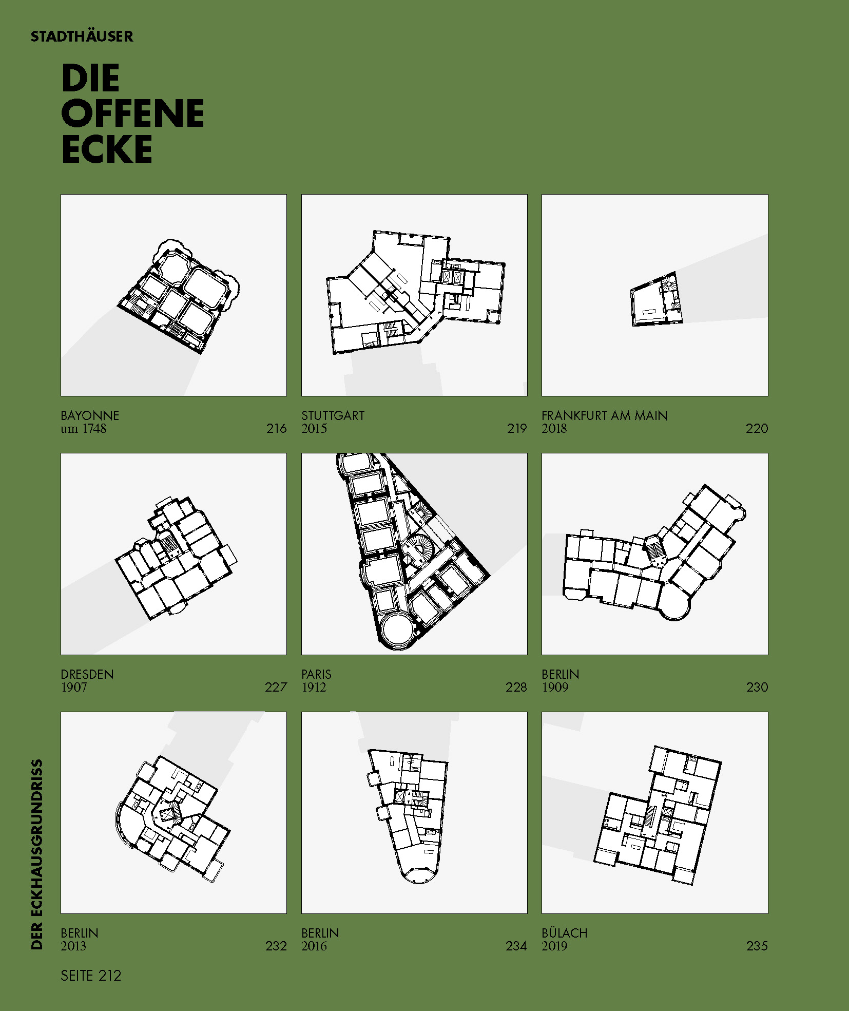 "Die erprobten und vorbildlichen Lösungen sind reichhaltig bebildert und unterteilt in die Typologien Die rechtwinklige Ecke, Die spitzwinklige Ecke, Die stumpfwinklige Ecke und Die offene Ecke. Sie dienen als Hilfestellung für den Eckhausentwurf und verdeutlichen den Zusammenhang zwischen der Morphologie der Stadt und des Hauses." (AIT)