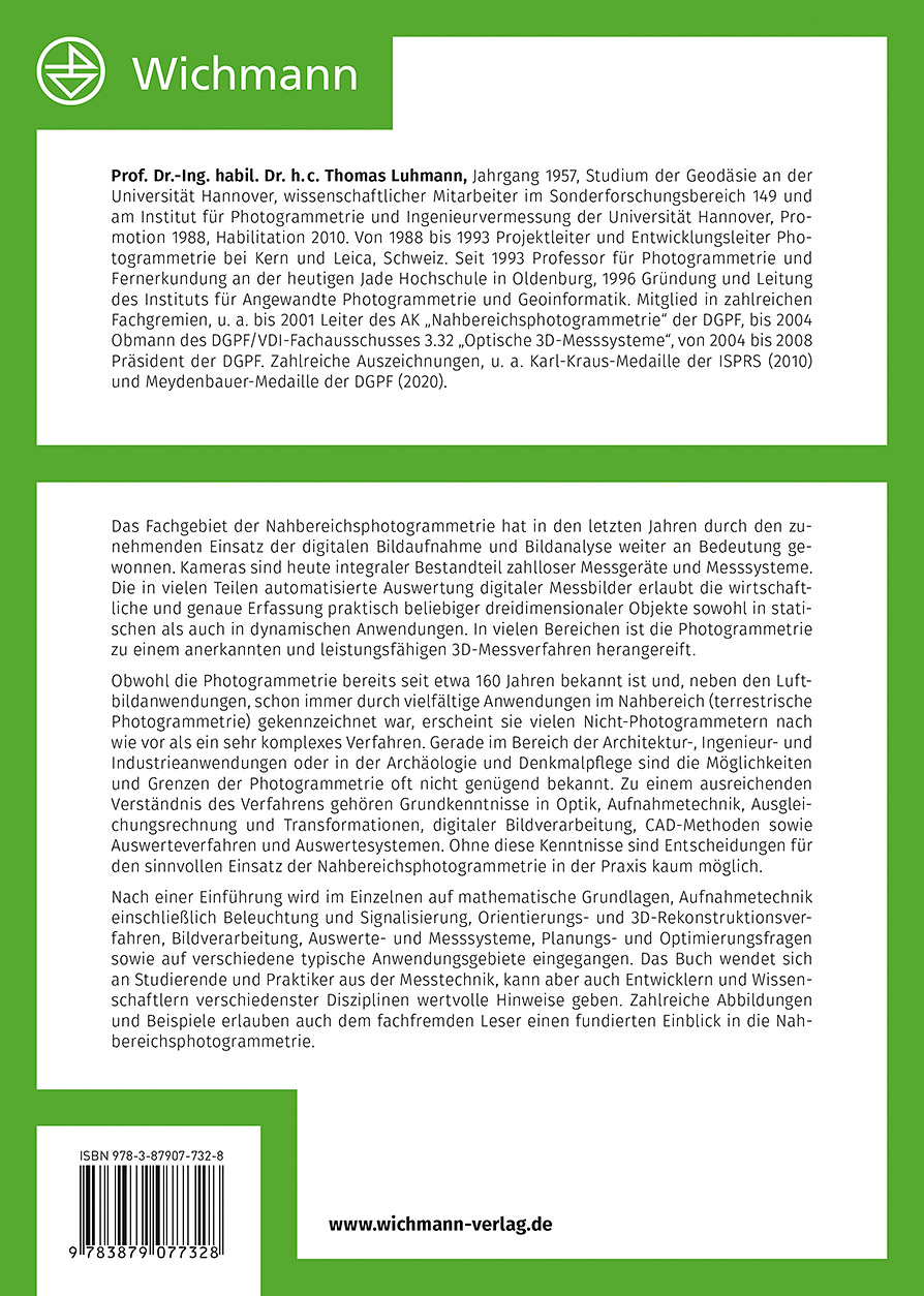 Prof. Dr.-Ing. habil. Thomas Luhmann ist Professor für Photogrammetrie und Fernerkundung an der Jade Hochschule in Oldenburg.