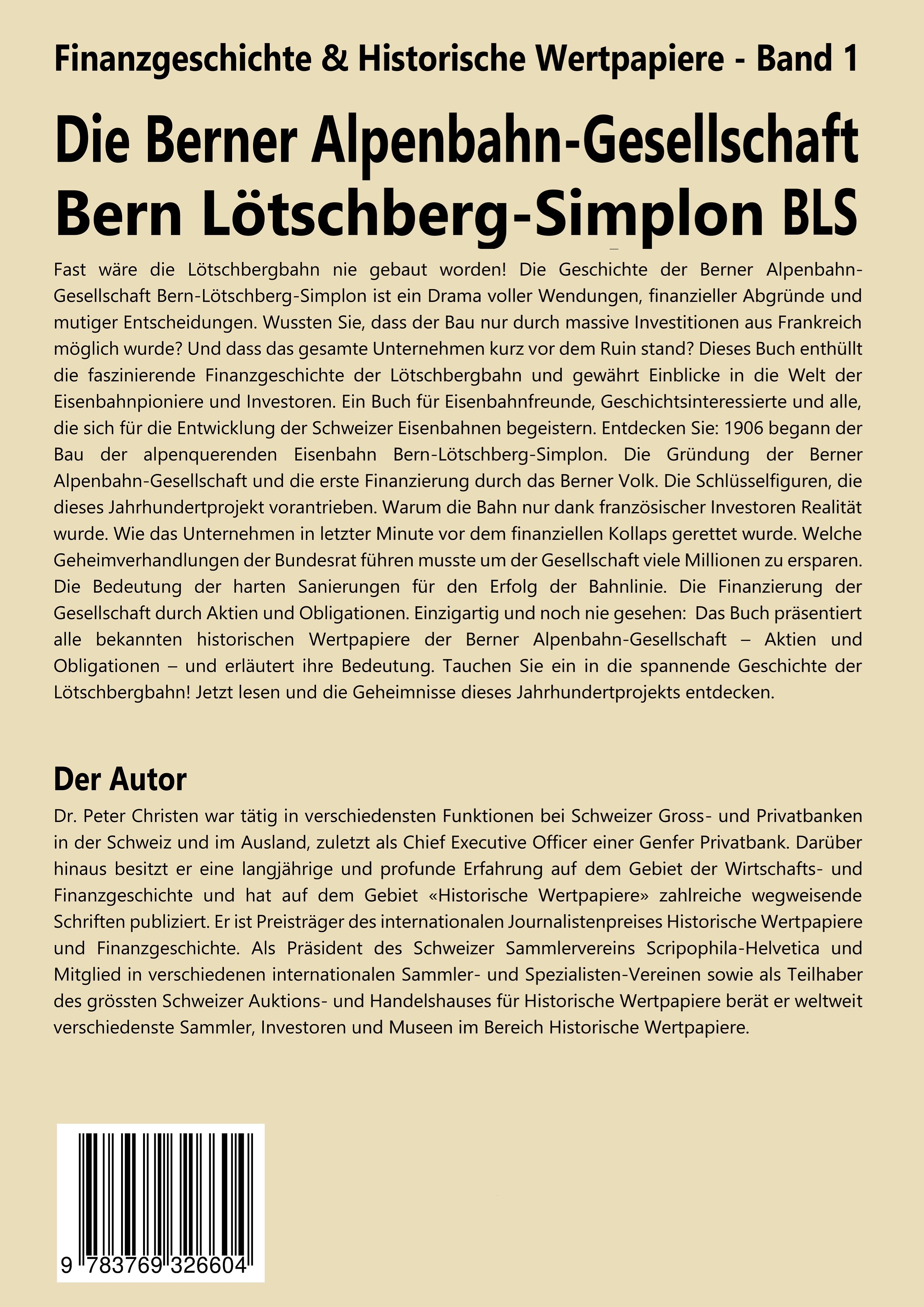 Dr. Peter Christen war tätig in verschiedensten Funktionen bei Schweizer Groß- und Privatbanken in der Schweiz und im Ausland, zuletzt als Chief Executive Officer einer Genfer Privatbank. Darüber hinaus besitzt er eine langjährige und profunde Erfahrung auf dem Gebiet der Wirtschafts- und Finanzgeschichte und hat auf dem Gebiet «Historische Wertpapiere» zahlreiche wegweisende Schriften publiziert. Er ist Preisträger des internationalen Journalistenpreises Historische Wertpapiere und Finanzgeschichte. Als Präsident des Schweizer Sammlervereins Scripophila-Helvetica und Mitglied in verschiedenen internationalen Sammler- und Spezialisten-Vereinen sowie als Teilhaber des größten Schweizer Auktions- und Handelshauses für Historische Wertpapiere berät er weltweit verschiedenste Sammler, Investoren und Museen im Bereich Historische Wertpapiere.