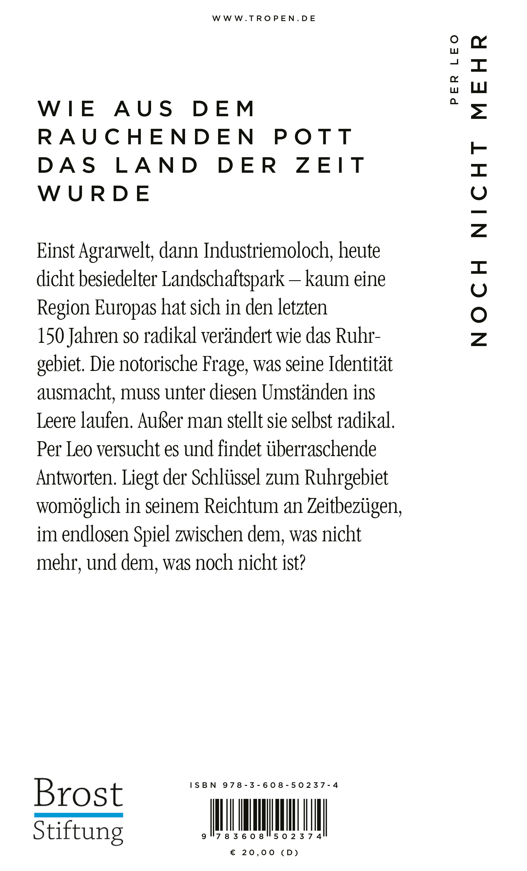 Einst Agrarwelt, dann Industriemoloch, heute dicht besiedelter Landschaftspark – kaum eine Region Europas hat sich in den letzten 150 Jahren so radikal verändert wie das Ruhrgebiet. Die notorische Frage, was seine Identität ausmacht, muss unter diesen Umständen ins Leere laufen. Außer man stellt sie selbst radikal. Per Leo versucht es und findet überraschende Antworten. Liegt der Schlüssel zum Ruhrgebiet womöglich in seinem Reichtum an Zeitbezügen, im endlosen Spiel zwischen dem, was nicht mehr, und dem, was noch nicht ist?