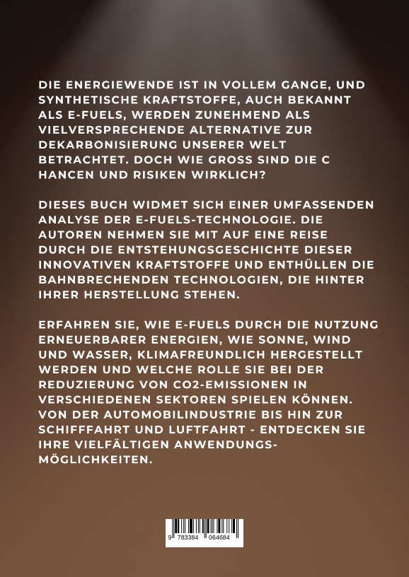 Die Energiewende ist in vollem Gange, und synthetische Kraftstoffe, auch bekannt als E-Fuels, werden zunehmend als vielversprechende Alternative zur Dekarbonisierung unserer Welt betrachtet. Doch wie groß sind die Chancen und Risiken wirklich?"E-Fuels - Chancen und Risiken synthetischer Kraftstoffe auf dem Weg zur Dekarbonisierung" widmet sich einer umfassenden Analyse der E-Fuels-Technologie. Die Autoren nehmen Sie mit auf eine Reise durch die Entstehungsgeschichte dieser innovativen Kraftstoffe und enthüllen die bahnbrechenden Technologien, die hinter ihrer Herstellung stehen.Erfahren Sie, wie E-Fuels durch die Nutzung erneuerbarer Energien, wie Sonne, Wind und Wasser, klimafreundlich hergestellt werden und welche Rolle sie bei der Reduzierung von CO2-Emissionen in verschiedenen Sektoren spielen können. Von der Automobilindustrie bis hin zur Schifffahrt und Luftfahrt - entdecken Sie ihre vielfältigen Anwendungsmöglichkeiten.