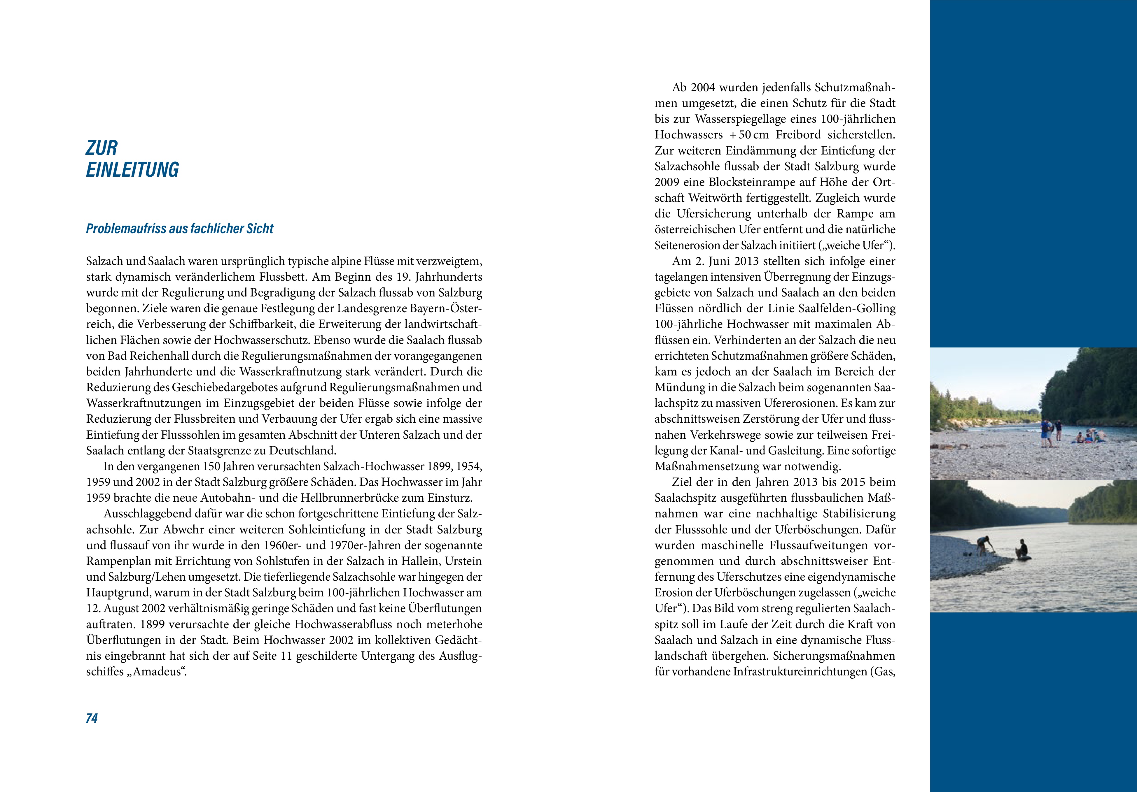 Die Hochwasser 2002 und 2005 haben die tradierten Sichtweisen auf Salzburgs Flüsse als Wasserstraßen, Entsorgungsgerinne, Schotter- und Kiesquellen sowie als Krafwerkskanäle entscheidend geändert. Bei der Analyse der dramatischen Ereignisse sind die Wasserbauer rasch zur Erkenntnis gelangt, dass die Flüsse just dort, wo man sie ihrer Ursprünglichkeit am meisten beraubt hat, am massivsten ausgebrochen sind. Der Schock hat allen die Augen geöffnet.