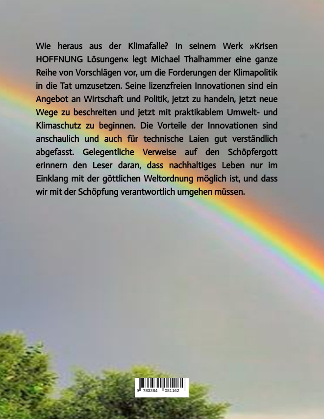 Mein Name ist Michael Thalhammer und ich komme aus Graz, das liegt in der grünen Steiermark. Ich bin Vater von drei erwachsenen Kindern und mehrfacher Großvater und lebe jetzt mit meiner Frau Maria in Wien. Vor meiner Pensionierung war ich hauptsächlich im sozialen Bereich tätig, habe aber auch öfters nur handwerklich gearbeitet. Ich war schon von klein auf ein Tüftler. So habe schon als 6-jähriger Junge meiner Mutter einen brauchbaren, handkurbelbetriebenen Schlagobersrührer gebaut. Zwar bin ich kein ausgebildeter Techniker oder Theologe, doch bin ich im Praktischen geschickt, und ich empfinde die heutigen Lebensweisen als bedenklich im Unheilvollen. Daher wagte ich mich über beide Themen und erhoffe einfach das Beste. Bitte überseht etwaige Fehlmeinungen mit humorvoller Nachsicht. Meine liebevolle Frau nennt mich gelegentlich scherzhaft "Materialtester". Sie gibt mir immer gute Ratschläge und hilft mir bei der Textbearbeitung. Warum veröffentliche ich die hier gezeigten Ansätze als patentfreien Stand der Technik? Erstens erstreckt sich Patentschutz nicht auf dringend notwendige Umweltschutzerfindungen, wenn wie hier, vorrangige Öffentlichkeitsrechte berührt werden. Zweitens sind Patentrechte und deren Verteidigung praktisch nur noch durch große Firmen und so gut wie nie durch eine Privatperson realisierbar. Und drittens lassen sich veröffentlichte Ideen als "open source" schneller verbreiten. Sie und jede Firma können diese Ansätze also zu einer Produktlinie Ihrer Marke ausbauen. Keine Lizenzen, keine strikten Bedingungen. Die hier vorgestellten technischen Innovationen existieren rein als Ideen ohne Firma; es hat daher auch keine eigenen fertigen Produkte. Sie stellen nur Anregungen dar, welche andere Bereitstellen mögen.