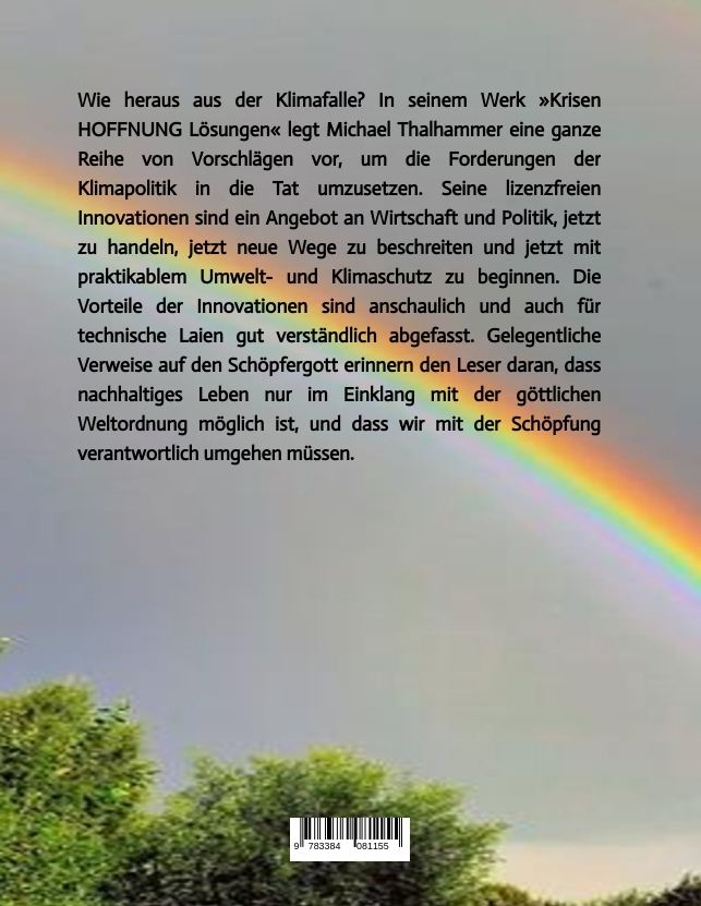 Mein Name ist Michael Thalhammer und ich komme aus Graz, das liegt in der grünen Steiermark. Ich bin Vater von drei erwachsenen Kindern und mehrfacher Großvater und lebe jetzt mit meiner Frau Maria in Wien. Vor meiner Pensionierung war ich hauptsächlich im sozialen Bereich tätig, habe aber auch öfters nur handwerklich gearbeitet. Ich war schon von klein auf ein Tüftler. So habe schon als 6-jähriger Junge meiner Mutter einen brauchbaren, handkurbelbetriebenen Schlagobersrührer gebaut. Zwar bin ich kein ausgebildeter Techniker oder Theologe, doch bin ich im Praktischen geschickt, und ich empfinde die heutigen Lebensweisen als bedenklich im Unheilvollen. Daher wagte ich mich über beide Themen und erhoffe einfach das Beste. Bitte überseht etwaige Fehlmeinungen mit humorvoller Nachsicht. Meine liebevolle Frau nennt mich gelegentlich scherzhaft "Materialtester". Sie gibt mir immer gute Ratschläge und hilft mir bei der Textbearbeitung. Warum veröffentliche ich die hier gezeigten Ansätze als patentfreien Stand der Technik? Erstens erstreckt sich Patentschutz nicht auf dringend notwendige Umweltschutzerfindungen, wenn wie hier, vorrangige Öffentlichkeitsrechte berührt werden. Zweitens sind Patentrechte und deren Verteidigung praktisch nur noch durch große Firmen und so gut wie nie durch eine Privatperson realisierbar. Und drittens lassen sich veröffentlichte Ideen als "open source" schneller verbreiten. Sie und jede Firma können diese Ansätze also zu einer Produktlinie Ihrer Marke ausbauen. Keine Lizenzen, keine strikten Bedingungen. Die hier vorgestellten technischen Innovationen existieren rein als Ideen ohne Firma; es hat daher auch keine eigenen fertigen Produkte. Sie stellen nur Anregungen dar, welche andere Bereitstellen mögen.