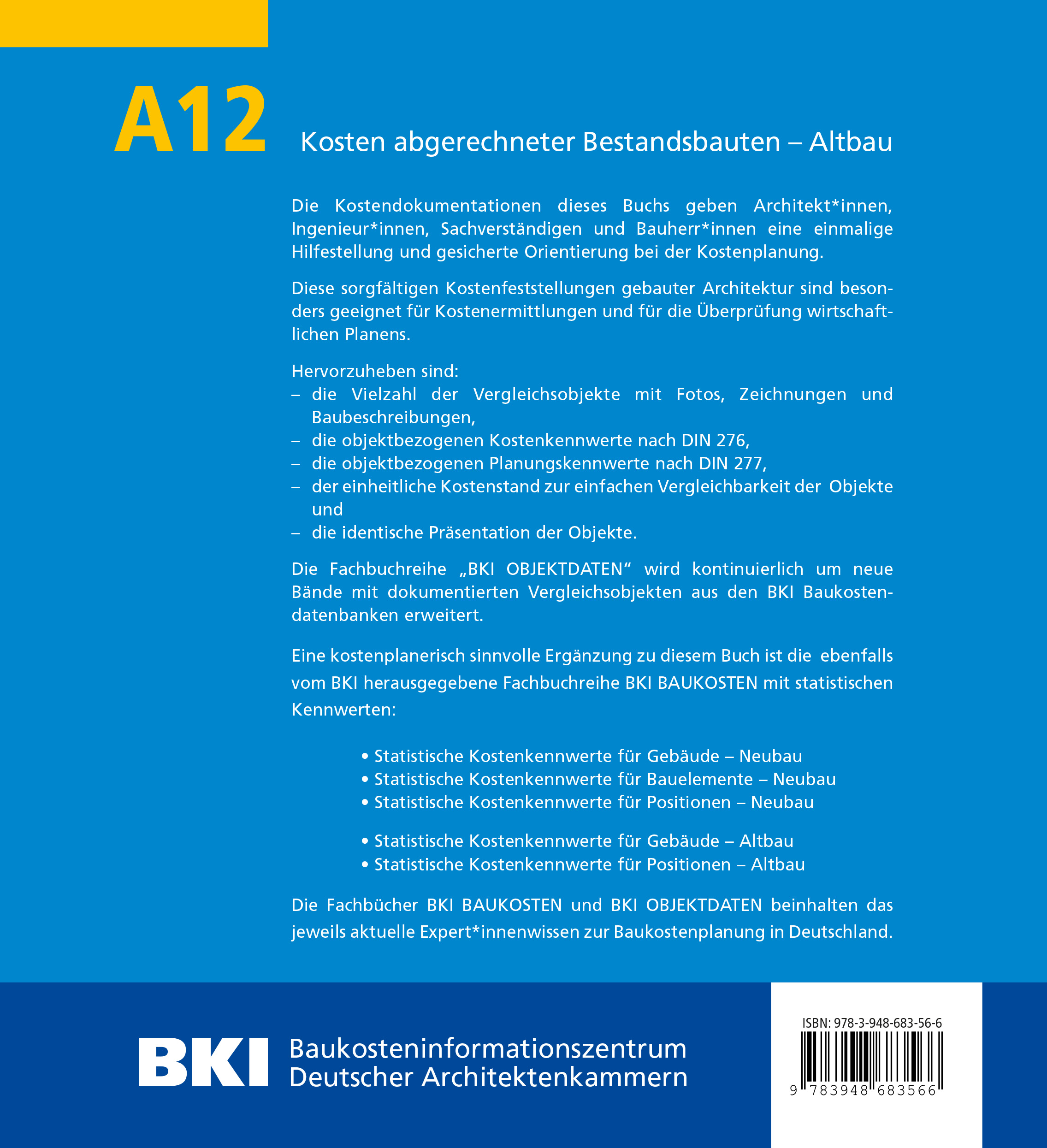 | Schlagworte | Altbau • Architektur • Baukosten • DIN 276:2018-12 • Energetische Kennwerte • Hochbau • Kostenkennwerte • Planungskennwerte • Regionalfaktoren |