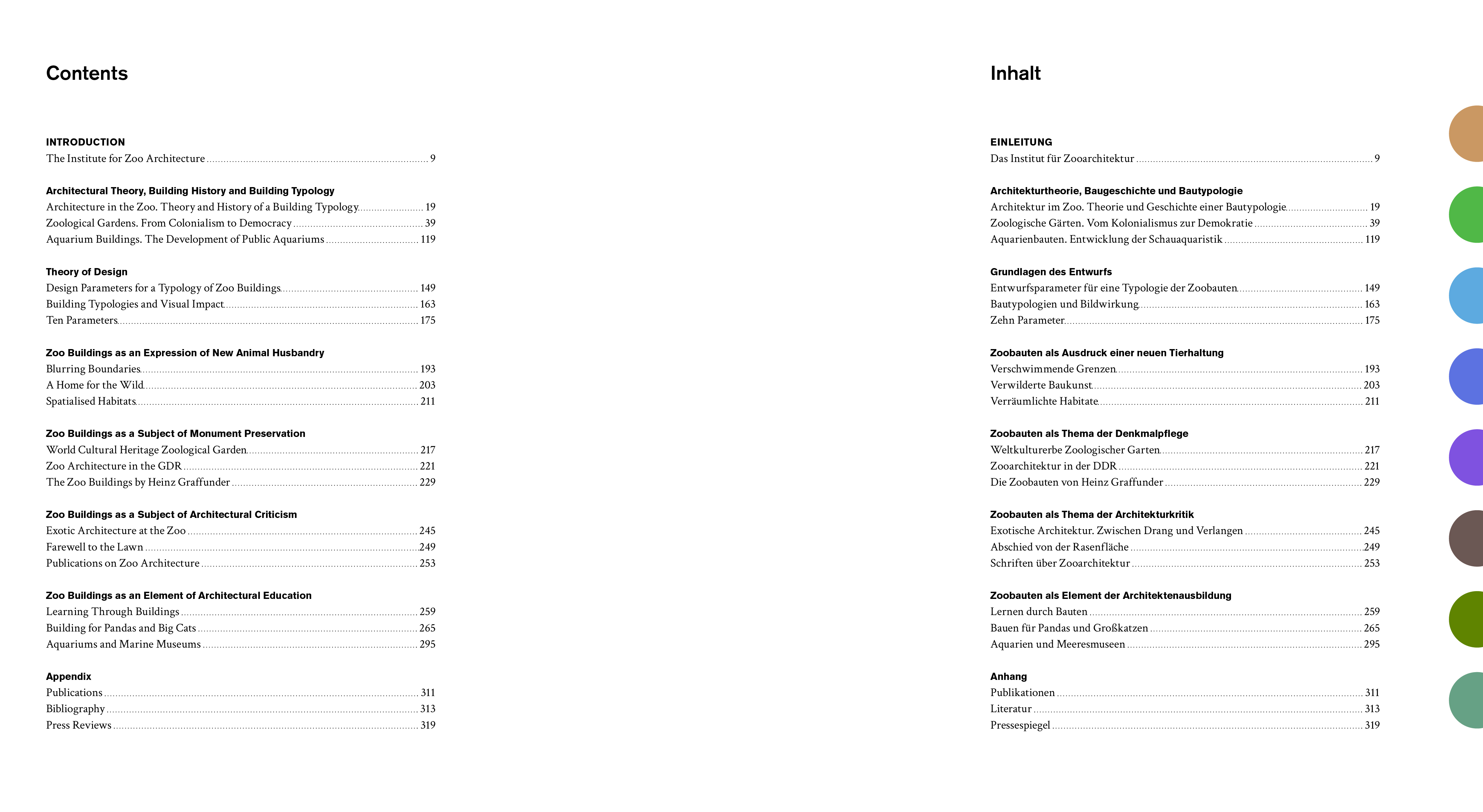 "World Zoo and Aquarium Architecture Vol. 1" bietet einen Überblick über aktuelle Trends im Bau von Zoos und Aquarien. Als Herausgeber dieser Reihe setzt sich das Institut für Zooarchitektur dafür ein, Entscheidungsträger und Besucher gleichermaßen für die Erhaltung der Artenvielfalt zu begeistern und das Profil des Zoos als einen Ort der aktiven Wissensvermittlung zu schärfen. "World Zoo and Aquarium Architecture Vol. 1" provides an overview of current trends in planning zoos and aquariums. As the curator of this series, the Institute of Zoo Architecture is committed to inspiring both decision-makers and visitors in favour of shaping the zoo into a place of knowledge transfer and preserving biodiversity.