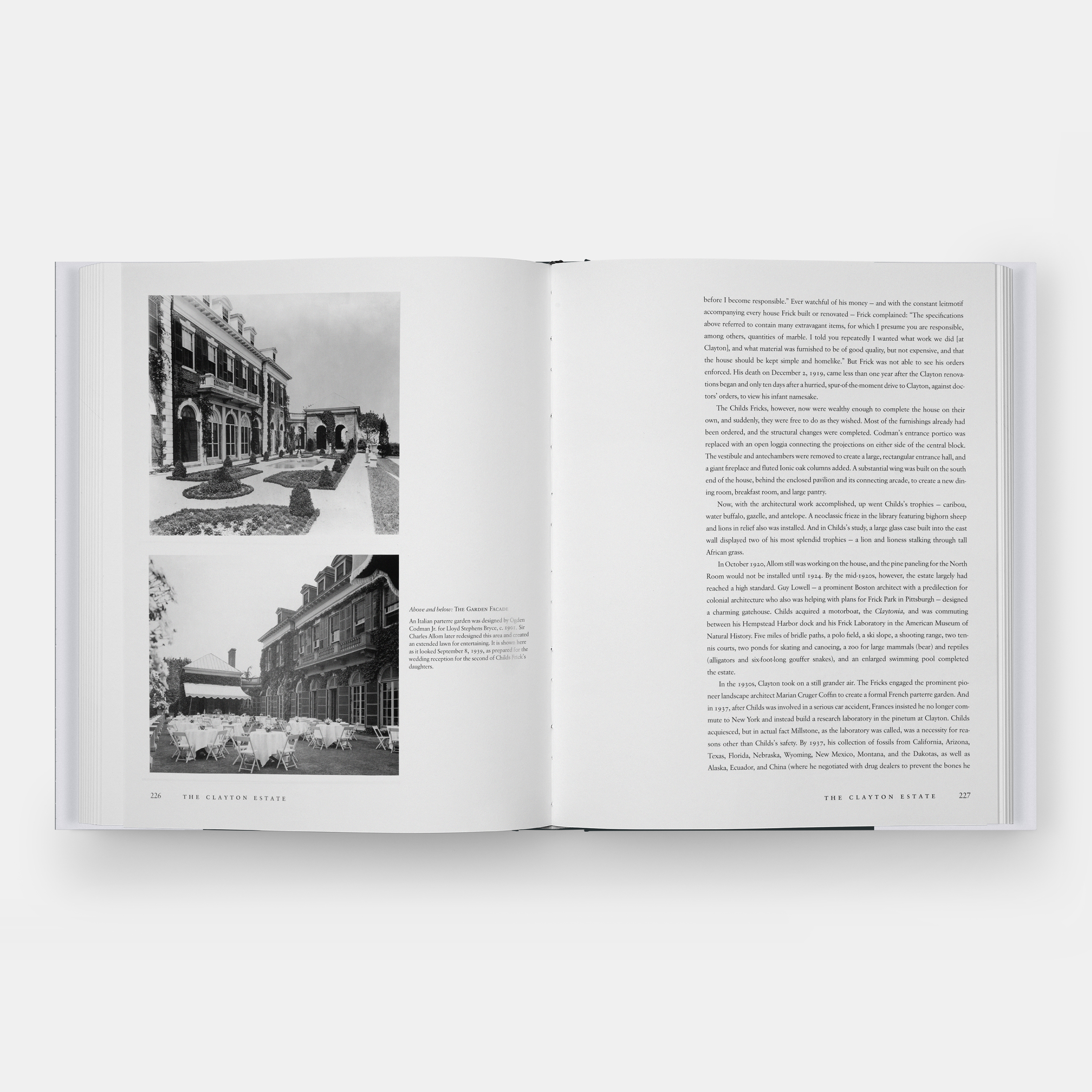 With priceless furnishings, interiors, and designed gardens by the most prestigious architects of the day, the houses featured in this book exemplify the great residences of the era: the late-Victorian Clayton in Pittsburgh, Pennsylvania houses the Frick Pittsburgh; the neoclassical Eagle Rock in Massachusetts was Frick’s summer retreat; One East Seventieth Street in New York is home to the world-renowned Frick Collection; and the Clayton Estate in Roslyn, New York is a Georgian Revival masterpiece.