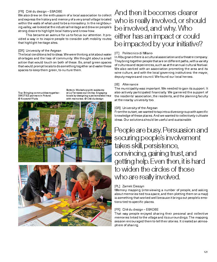 Das SMOTIES-Netzwerk ist eine Partnerschaft von zehn Designhochschulen, Forschungszentren, Kreativagenturen und nationalen Verbänden. Jeder Partner wählte einen kleinen, abgelegenen Ort in seinem Land aus, der von der Gestaltung kultureller und kreativer Regeneration im öffentlichen Raum und in Zusammenarbeit mit lokalen Akteuren profitieren soll.