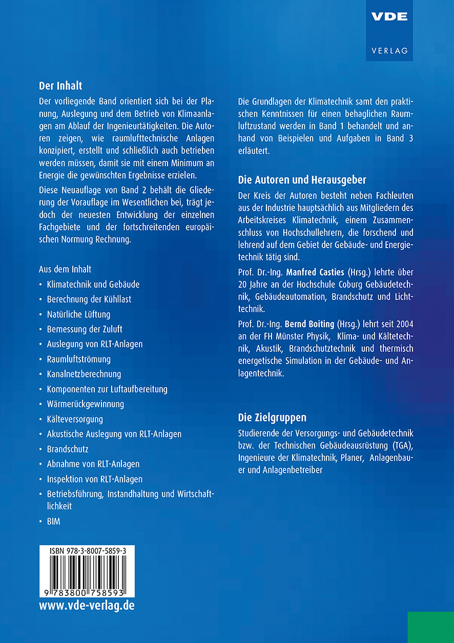 Die Herausgeber und Autoren sind Professoren aus dem Bereich der Klimatechnik und der Gebäudeautomation mit langjähriger Erfahrung in Praxis und Lehre und Mitglieder des "Arbeitskreis für Klimatechnik".