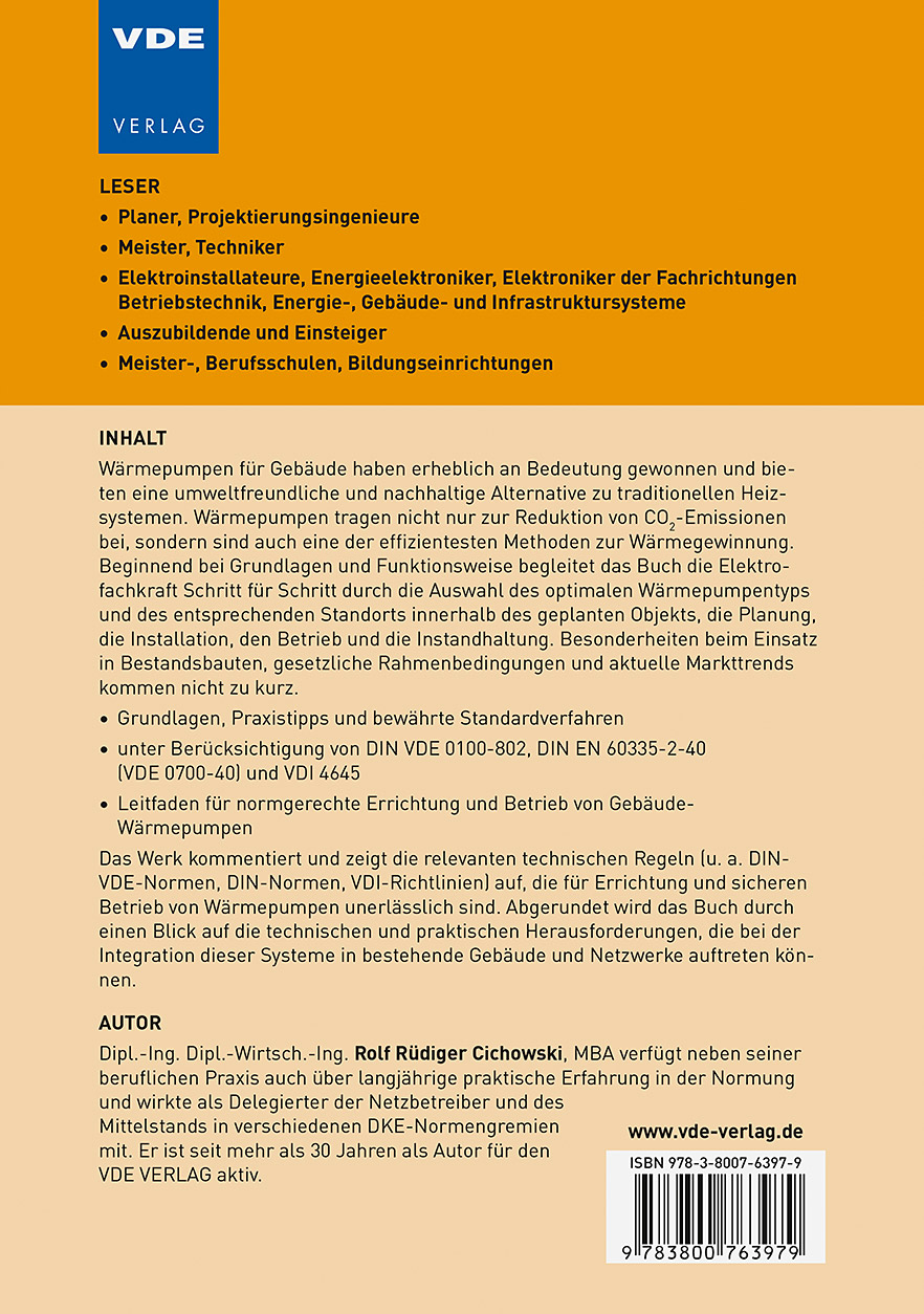 Dipl.-Ing. Dipl.-Wirtsch.-Ing. Rolf Rüdiger Cichowski, MBA verfügt neben seiner beruflichen Praxis auch über langjährige praktische Erfahrung in der Normung und wirkte als Delegierter der Netzbetreiber und des Mittelstands in verschiedenen DKE-Normengremien mit. Er ist seit mehr als 30 Jahren als Autor für den VDE VERLAG aktiv.