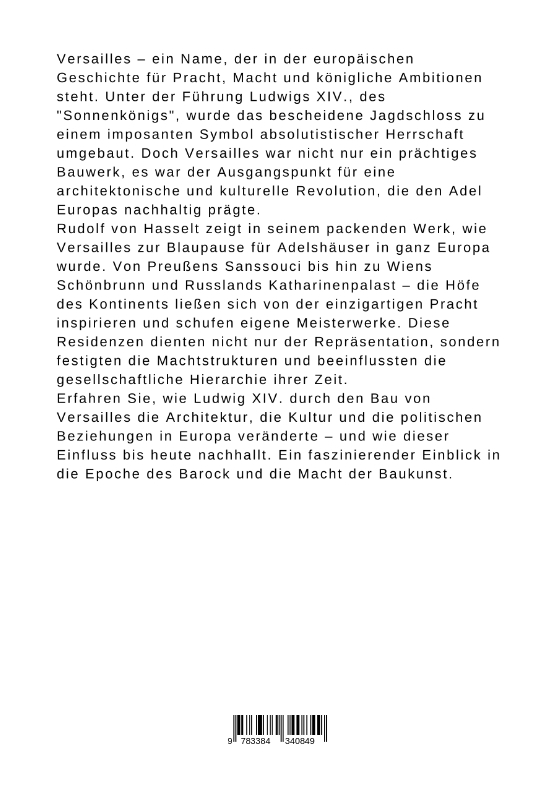 Im 17. Jahrhundert setzte Ludwig XIV. mit dem Schloss Versailles ein unvergängliches Zeichen absolutistischer Macht und kultureller Exzellenz. In seinem Werk "Das Vermächtnis von Versailles: Die Transformation des Adels durch Ludwigs XIV. Versailles" führt Rudolf von Hasselt die Leser tief in die faszinierende Welt dieses prachtvollen Palastes ein.Von der visionären Planung über die beeindruckenden Bauphasen bis hin zur meisterhaften Gestaltung der weitläufigen Gärten von André Le Nôtre - das Buch beleuchtet, wie Versailles nicht nur ein architektonisches Meisterwerk wurde, sondern auch ein wirkungsvolles politisches Instrument zur Kontrolle und Transformation des europäischen Adels darstellte.Durch detailreiche Analysen und packende Erzählungen zeigt von Hasselt, wie Ludwig XIV. den Hof nach Versailles zog, um den Adel an sich zu binden, ihre Loyalität durch Pracht und Zeremonie zu sichern und ein neues gesellschaftliches Gefüge zu etablieren. Zudem wird der kulturelle Austausch zwischen den europäischen Höfen untersucht, der Versailles zum Vorbild zahlreicher anderer Residenzen machte und die europäische Architektur nachhaltig prägte.Dieses Buch bietet nicht nur eine umfassende Baugeschichte von Versailles, sondern auch tiefgehende Einblicke in die politische und gesellschaftliche Dynamik des Absolutismus. Es ist ein unverzichtbares Werk für alle, die die Wechselwirkungen zwischen Architektur, Macht und Gesellschaft im Zeitalter Ludwigs XIV. verstehen möchten.Tauchen Sie ein in das strahlende Erbe von Versailles und entdecken Sie, wie ein Schloss die Geschichte Europas veränderte.
