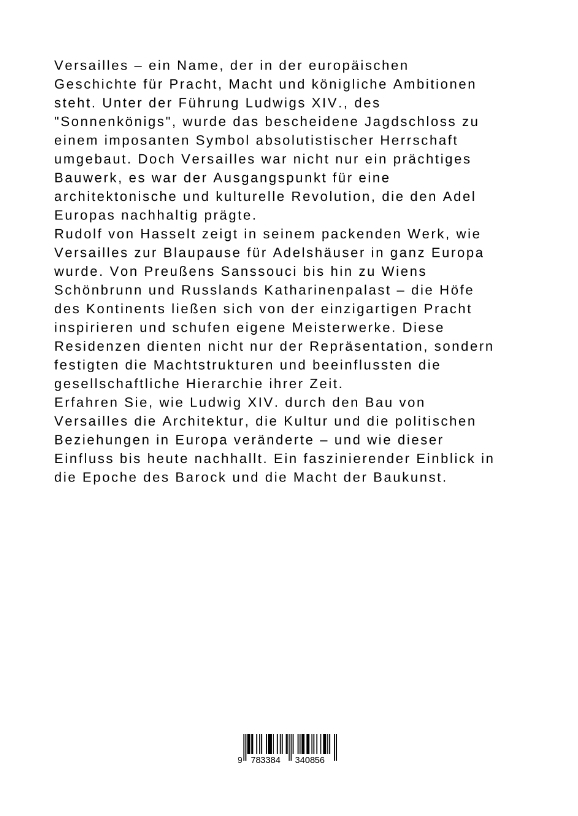 Im 17. Jahrhundert setzte Ludwig XIV. mit dem Schloss Versailles ein unvergängliches Zeichen absolutistischer Macht und kultureller Exzellenz. In seinem Werk "Das Vermächtnis von Versailles: Die Transformation des Adels durch Ludwigs XIV. Versailles" führt Rudolf von Hasselt die Leser tief in die faszinierende Welt dieses prachtvollen Palastes ein.Von der visionären Planung über die beeindruckenden Bauphasen bis hin zur meisterhaften Gestaltung der weitläufigen Gärten von André Le Nôtre - das Buch beleuchtet, wie Versailles nicht nur ein architektonisches Meisterwerk wurde, sondern auch ein wirkungsvolles politisches Instrument zur Kontrolle und Transformation des europäischen Adels darstellte.Durch detailreiche Analysen und packende Erzählungen zeigt von Hasselt, wie Ludwig XIV. den Hof nach Versailles zog, um den Adel an sich zu binden, ihre Loyalität durch Pracht und Zeremonie zu sichern und ein neues gesellschaftliches Gefüge zu etablieren. Zudem wird der kulturelle Austausch zwischen den europäischen Höfen untersucht, der Versailles zum Vorbild zahlreicher anderer Residenzen machte und die europäische Architektur nachhaltig prägte.Dieses Buch bietet nicht nur eine umfassende Baugeschichte von Versailles, sondern auch tiefgehende Einblicke in die politische und gesellschaftliche Dynamik des Absolutismus. Es ist ein unverzichtbares Werk für alle, die die Wechselwirkungen zwischen Architektur, Macht und Gesellschaft im Zeitalter Ludwigs XIV. verstehen möchten.Tauchen Sie ein in das strahlende Erbe von Versailles und entdecken Sie, wie ein Schloss die Geschichte Europas veränderte.