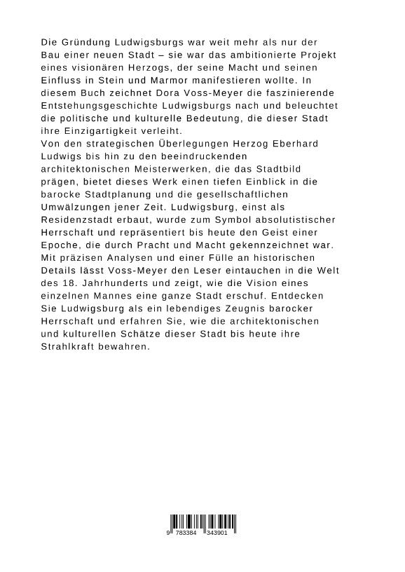 Die Gründung Ludwigsburgs war weit mehr als nur der Bau einer neuen Stadt - sie war das ambitionierte Projekt eines visionären Herzogs, der seine Macht und seinen Einfluss in Stein und Marmor manifestieren wollte. In diesem Buch zeichnet Dora Voss-Meyer die faszinierende Entstehungsgeschichte Ludwigsburgs nach und beleuchtet die politische und kulturelle Bedeutung, die dieser Stadt ihre Einzigartigkeit verleiht.Von den strategischen Überlegungen Herzog Eberhard Ludwigs bis hin zu den beeindruckenden architektonischen Meisterwerken, die das Stadtbild prägen, bietet dieses Werk einen tiefen Einblick in die barocke Stadtplanung und die gesellschaftlichen Umwälzungen jener Zeit. Ludwigsburg, einst als Residenzstadt erbaut, wurde zum Symbol absolutistischer Herrschaft und repräsentiert bis heute den Geist einer Epoche, die durch Pracht und Macht gekennzeichnet war.Mit präzisen Analysen und einer Fülle an historischen Details lässt Voss-Meyer den Leser eintauchen in die Welt des 18. Jahrhunderts und zeigt, wie die Vision eines einzelnen Mannes eine ganze Stadt erschuf. Entdecken Sie Ludwigsburg als ein lebendiges Zeugnis barocker Herrschaft und erfahren Sie, wie die architektonischen und kulturellen Schätze dieser Stadt bis heute ihre Strahlkraft bewahren.