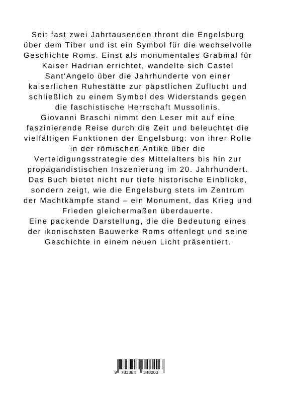 Seit fast zwei Jahrtausenden thront die Engelsburg über dem Tiber und ist ein Symbol für die wechselvolle Geschichte Roms. Einst als monumentales Grabmal für Kaiser Hadrian errichtet, wandelte sich Castel Sant'Angelo über die Jahrhunderte von einer kaiserlichen Ruhestätte zur päpstlichen Zuflucht und schließlich zu einem Symbol des Widerstands gegen die faschistische Herrschaft Mussolinis.Giovanni Braschi nimmt den Leser mit auf eine faszinierende Reise durch die Zeit und beleuchtet die vielfältigen Funktionen der Engelsburg: von ihrer Rolle in der römischen Antike über die Verteidigungsstrategie des Mittelalters bis hin zur propagandistischen Inszenierung im 20. Jahrhundert. Das Buch bietet nicht nur tiefe historische Einblicke, sondern zeigt, wie die Engelsburg stets im Zentrum der Machtkämpfe stand - ein Monument, das Krieg und Frieden gleichermaßen überdauerte.Eine packende Darstellung, die die Bedeutung eines der ikonischsten Bauwerke Roms offenlegt und seine Geschichte in einem neuen Licht präsentiert.
