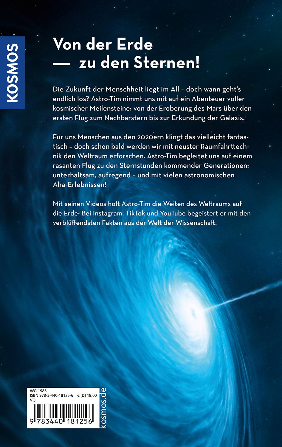 Wir waren auf dem Mond und schicken Sonden auf ferne Planeten, Monde und sogar bis an die äußersten Grenzen des Sonnensystems. Doch wie wird die Zukunft der Menschheit im Weltraum weitergehen? Welche Visionen und Konzepte gibt es derzeit? Und stehen der Menschheit vielleicht sogar neue Sternstunden ungeahnter interstellarer Durchbrüche bevor? Tim Ruster (@astrotim_offiziell) sagt ganz klar „ja!“ und zeigt in diesem Buch, welche faszinierenden Ideen die Raumfahrt von morgen bereithält. Kapitel für Kapitel gibt er einen spannenden Abriss über wichtige Meilensteine der Zukunft – von der Kolonialisierung des Mars bis hin zu interstellaren Reisen – und erklärt ganz nebenbei und leicht verständlich die wichtigsten Grundkonzepte der Astronomie. Ein inspirierender Blick auf die vielversprechende Zukunft der Menschheit im Weltraum!