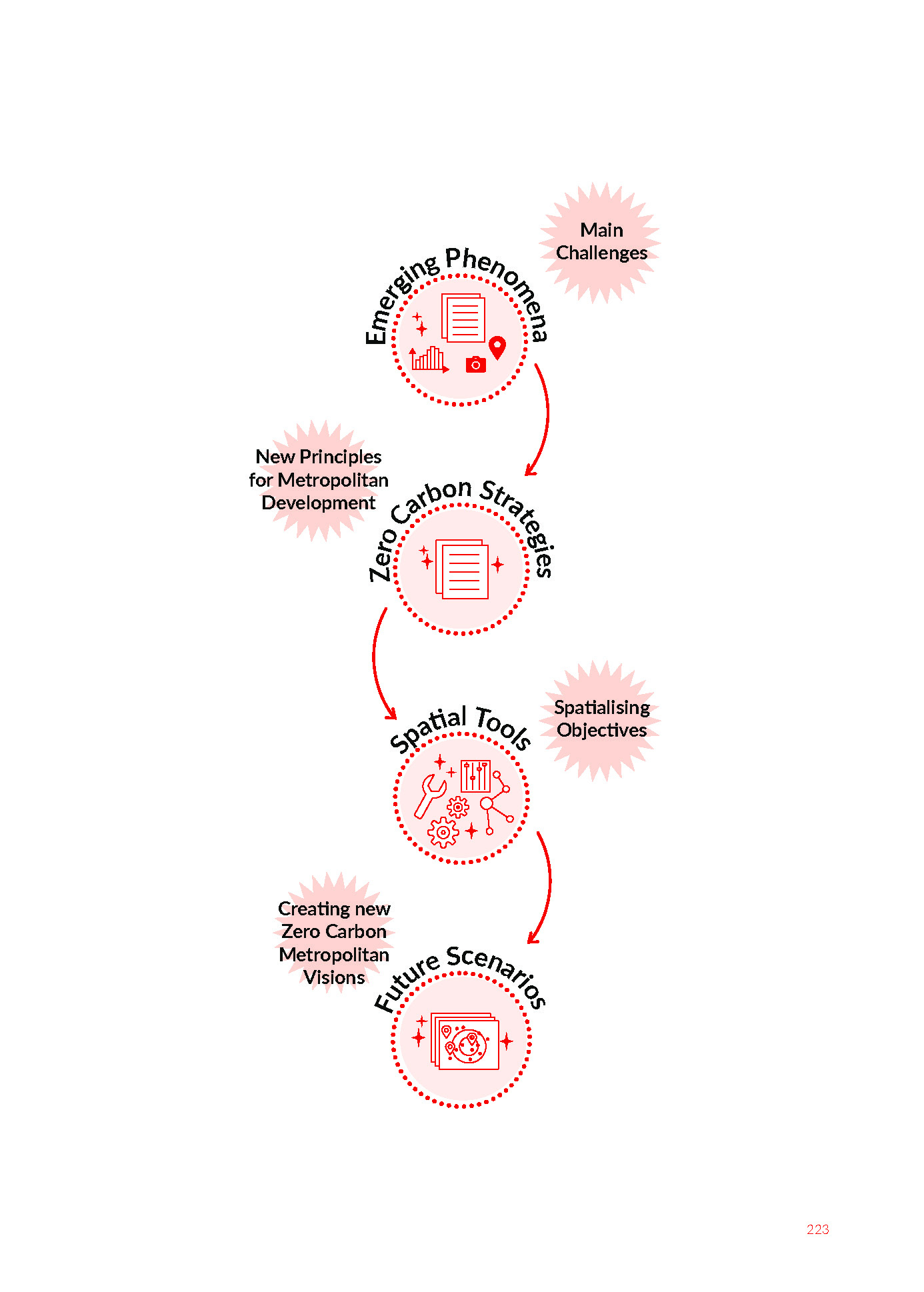 Die kreative kartografische Darstellung offenbart vielschichtige räumliche Phänomene, funktionale Verknüpfungen und räumliche Beziehungen zwischen der Stadt und ihrem Umfeld, indem sie die auffälligsten Trends visuell vermittelt und veranschaulicht, wie sich Klimaziele durch eine integrierte, grenzüberschreitende Entwicklung erreichen lassen.