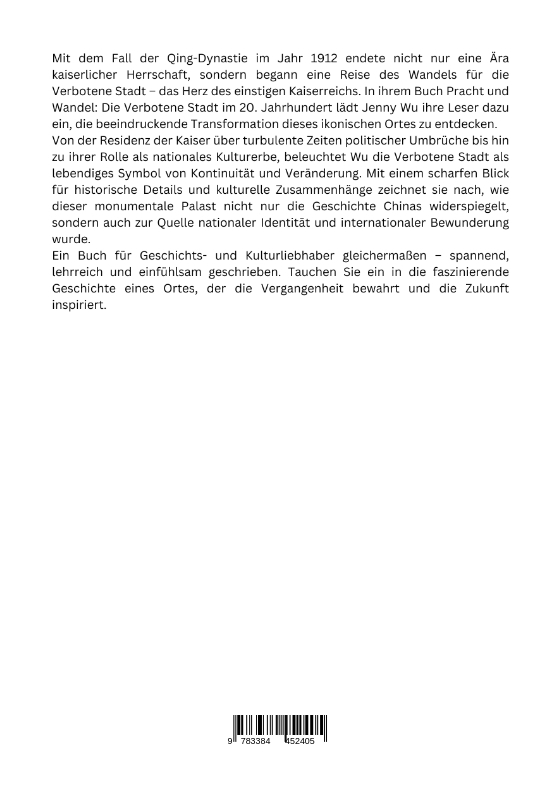 Von der Residenz der Kaiser über turbulente Zeiten politischer Umbrüche bis hin zu ihrer Rolle als nationales Kulturerbe, beleuchtet Wu die Verbotene Stadt als lebendiges Symbol von Kontinuität und Veränderung. Mit einem scharfen Blick für historische Details und kulturelle Zusammenhänge zeichnet sie nach, wie dieser monumentale Palast nicht nur die Geschichte Chinas widerspiegelt, sondern auch zur Quelle nationaler Identität und internationaler Bewunderung wurde.