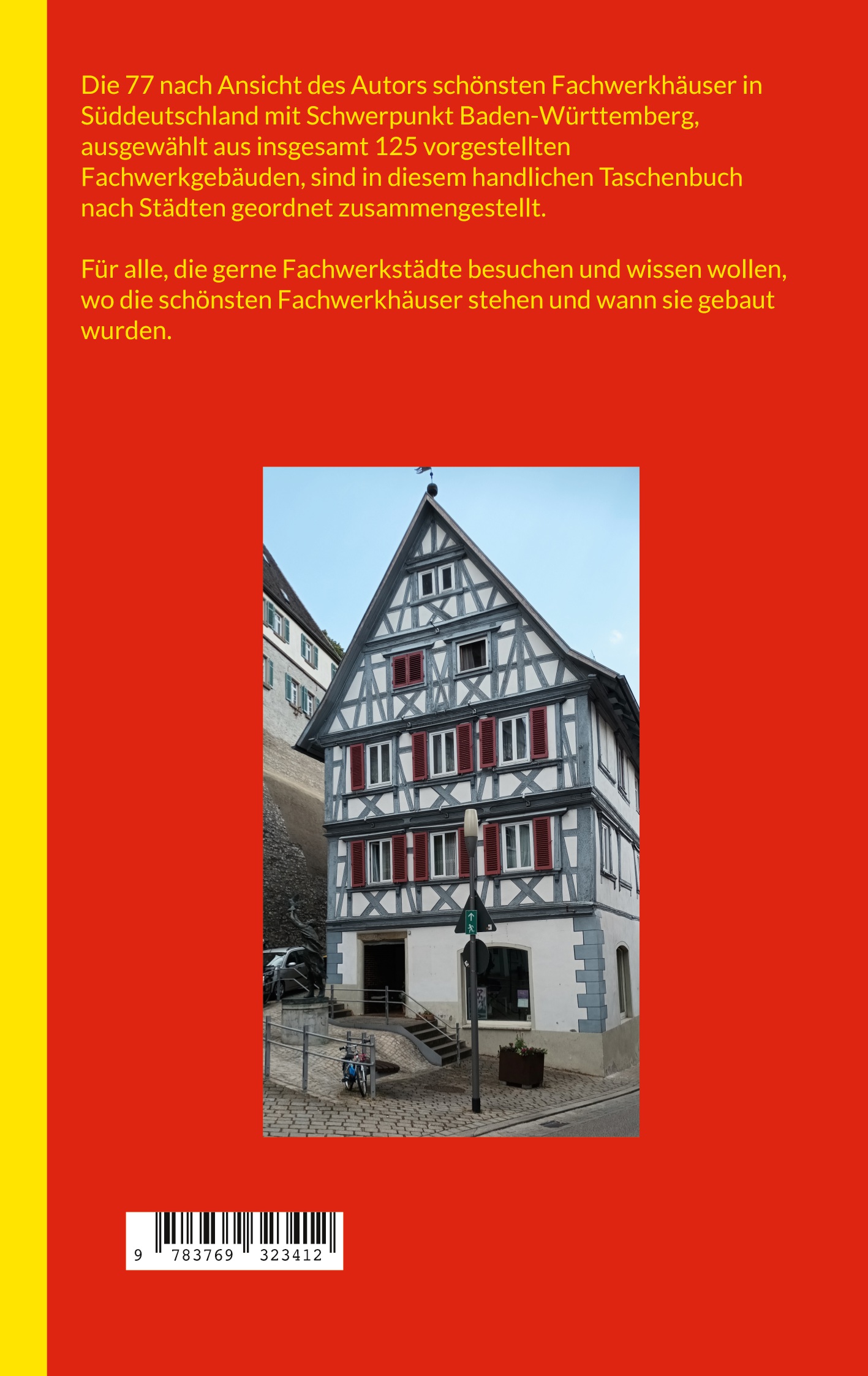 Die 77 nach Ansicht des Autors schönsten Fachwerkhäuser in Süddeutschland mit Schwerpunkt Baden-Württemberg, ausgewählt aus insgesamt 125 vorgestellten Fachwerkgebäuden, sind in diesem handlichen Taschenbuch nach Städten geordnet zusammengestellt.
